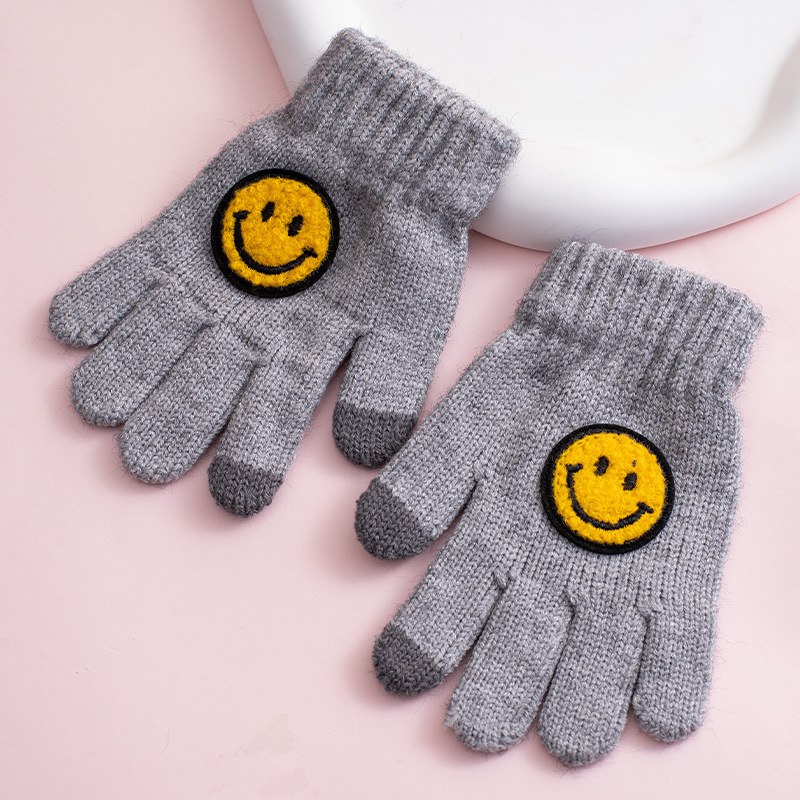• [그레이] (웃는 얼굴 천 스티커) 아이의 귀여운 장갑