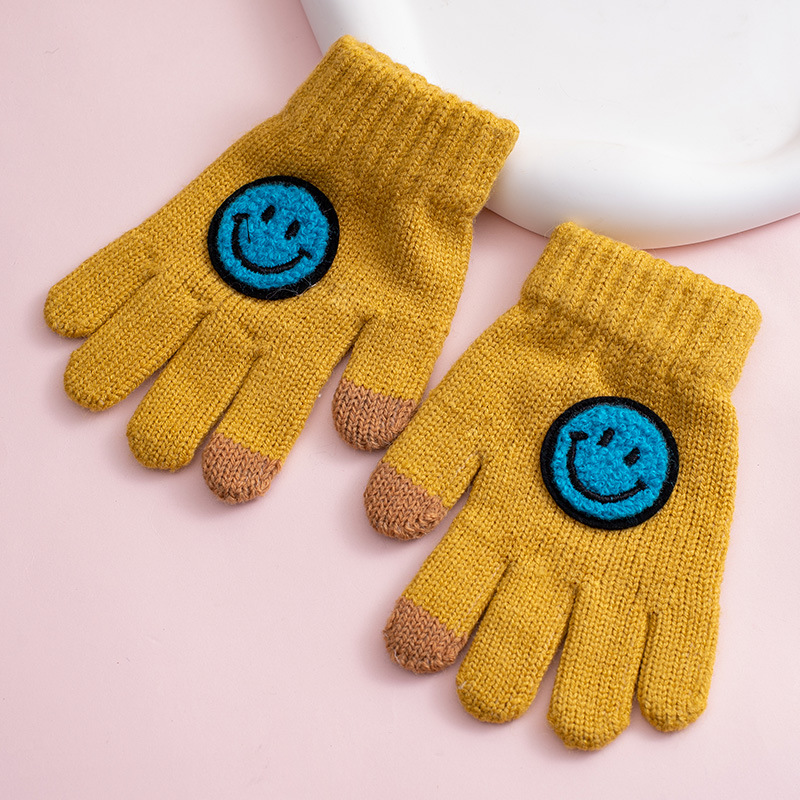 • [노랑] (웃는 얼굴 천 스티커) 아이의 귀여운 장갑