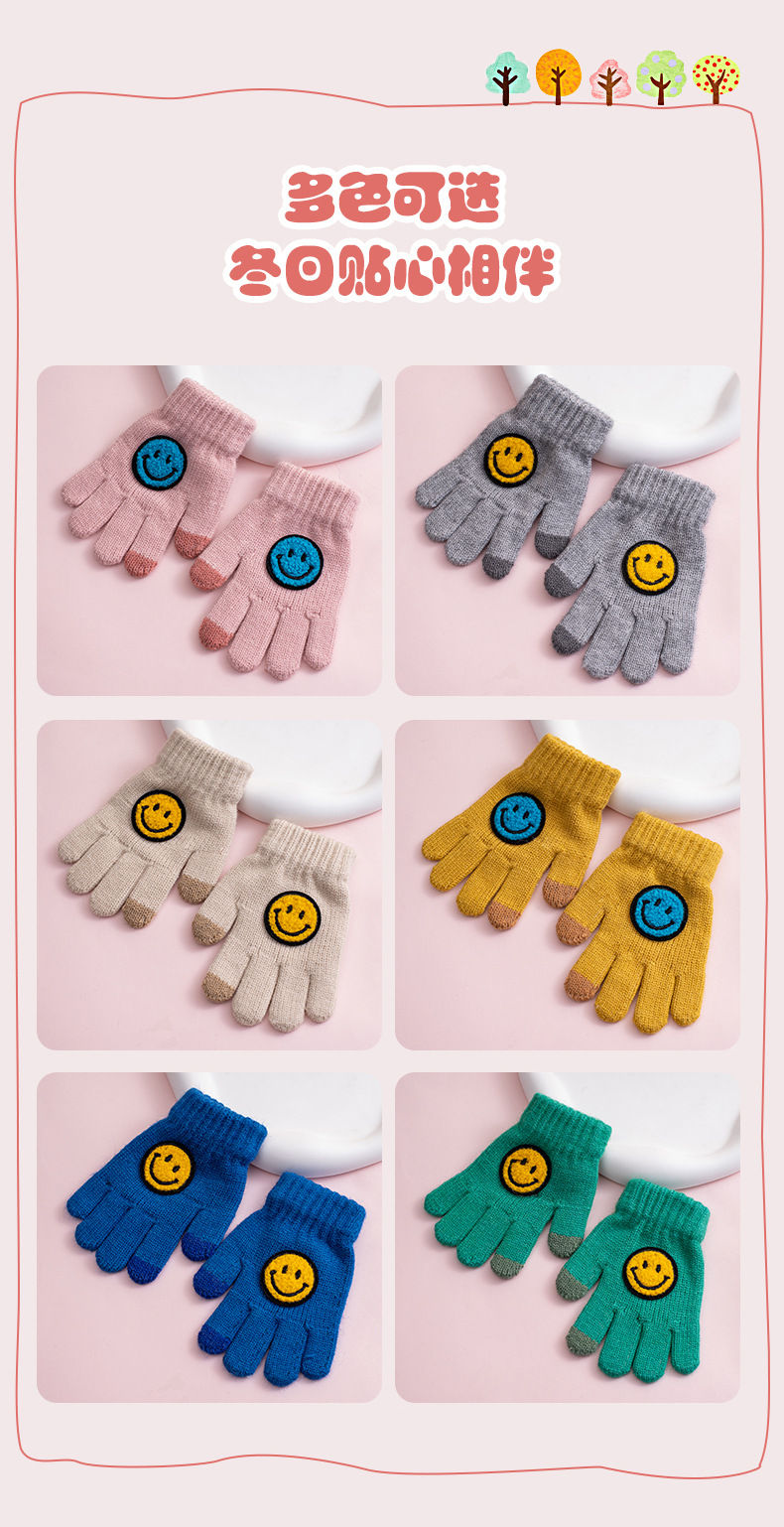 가을과 겨울 어린이 장갑 소녀 방한 소년 따뜻한 스마일 다섯 손가락 아기 니트 귀여운 양모 장갑 유행