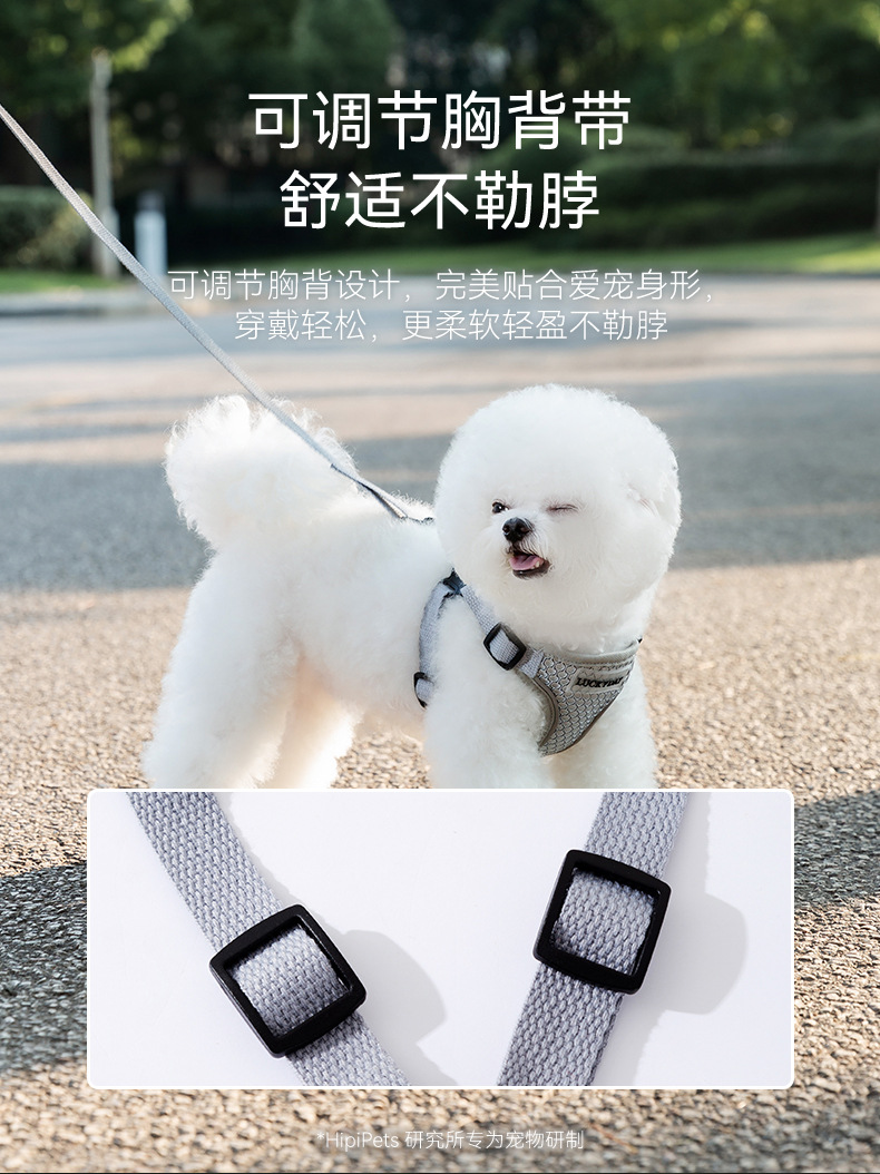 개 봄과 여름 통기성 샌드위치 야외 후면 삽입 견인 로프 사계절 중소형 개 워킹 로프 가슴 스트랩