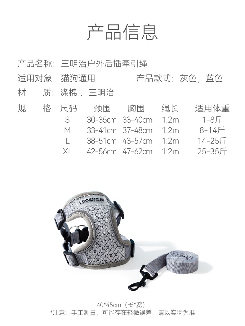 개 봄과 여름 통기성 샌드위치 야외 후면 삽입 견인 로프 사계절 중소형 개 워킹 로프 가슴 스트랩스토어 가기