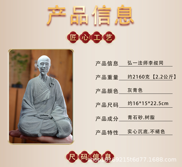 마스터 Hongyi 부처 동상 리 Shutong 그림 조각 사암 장식품 중국 고전 선 연구 불교 공예스토어 가기
