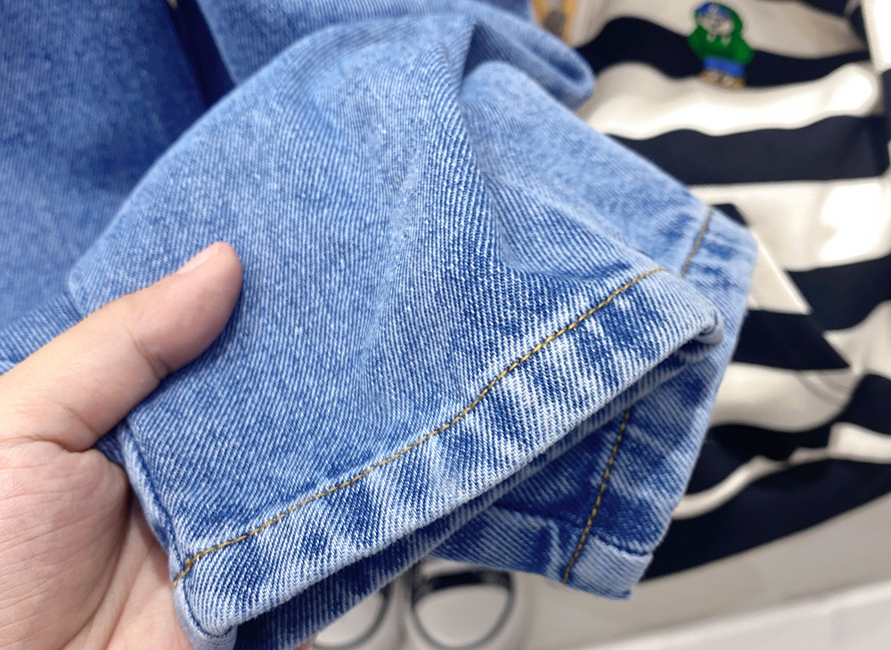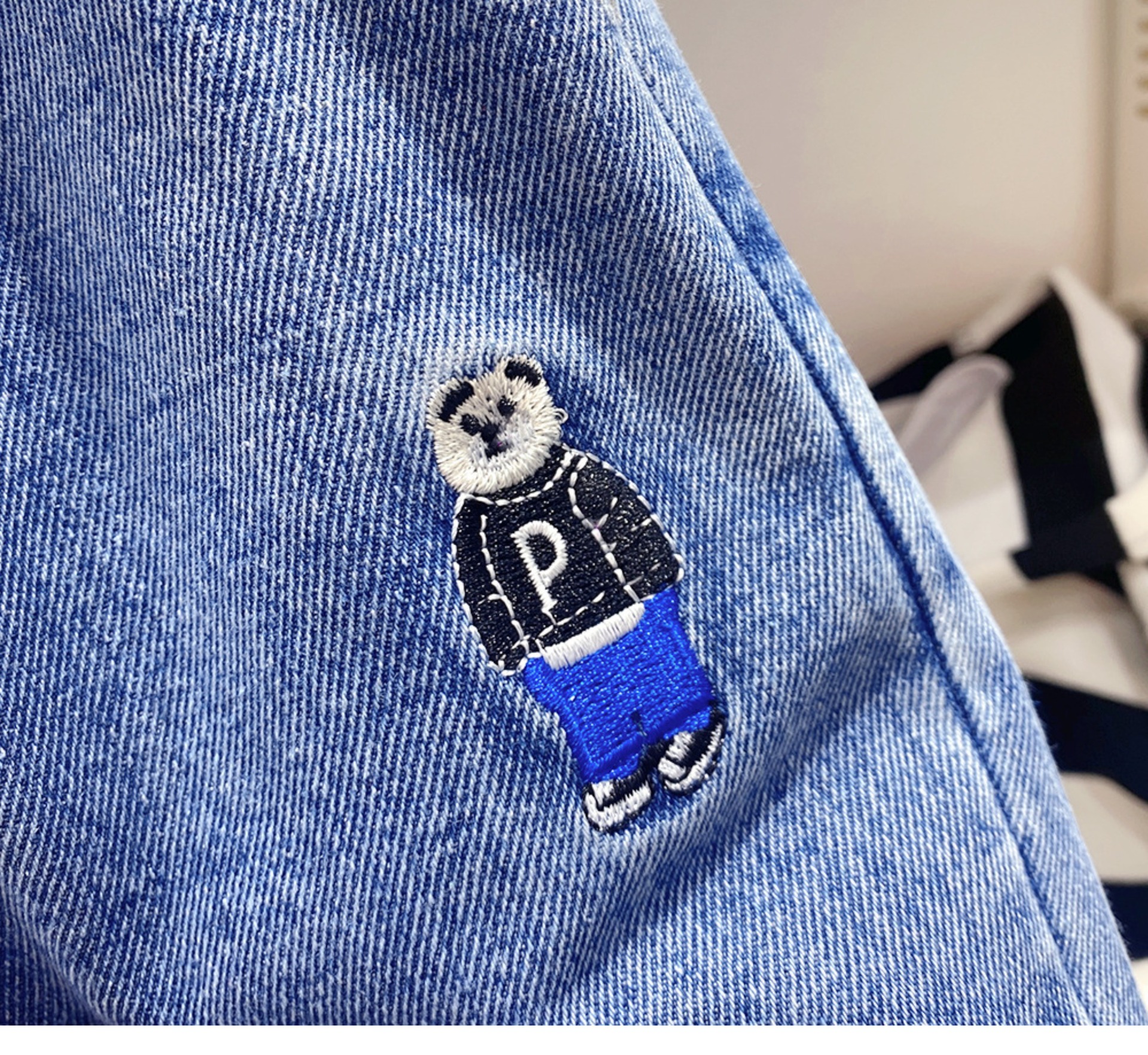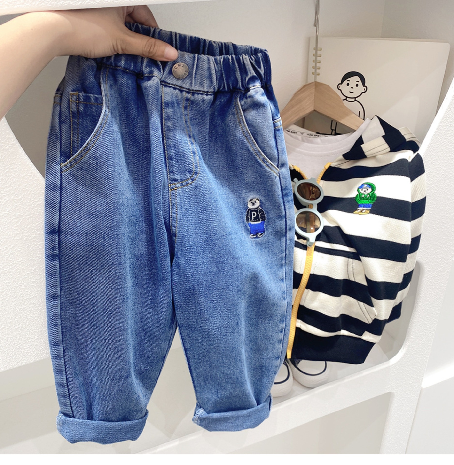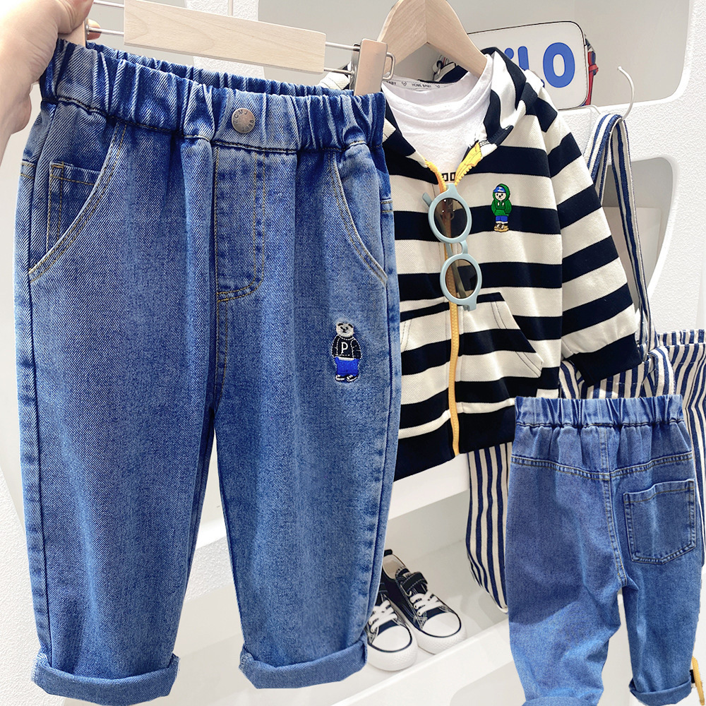 아동용 소프트 청바지 남아 학생 자수 베어 웨스턴 스타일 롱 팬츠 아기의 모든 매치 루즈한 바지