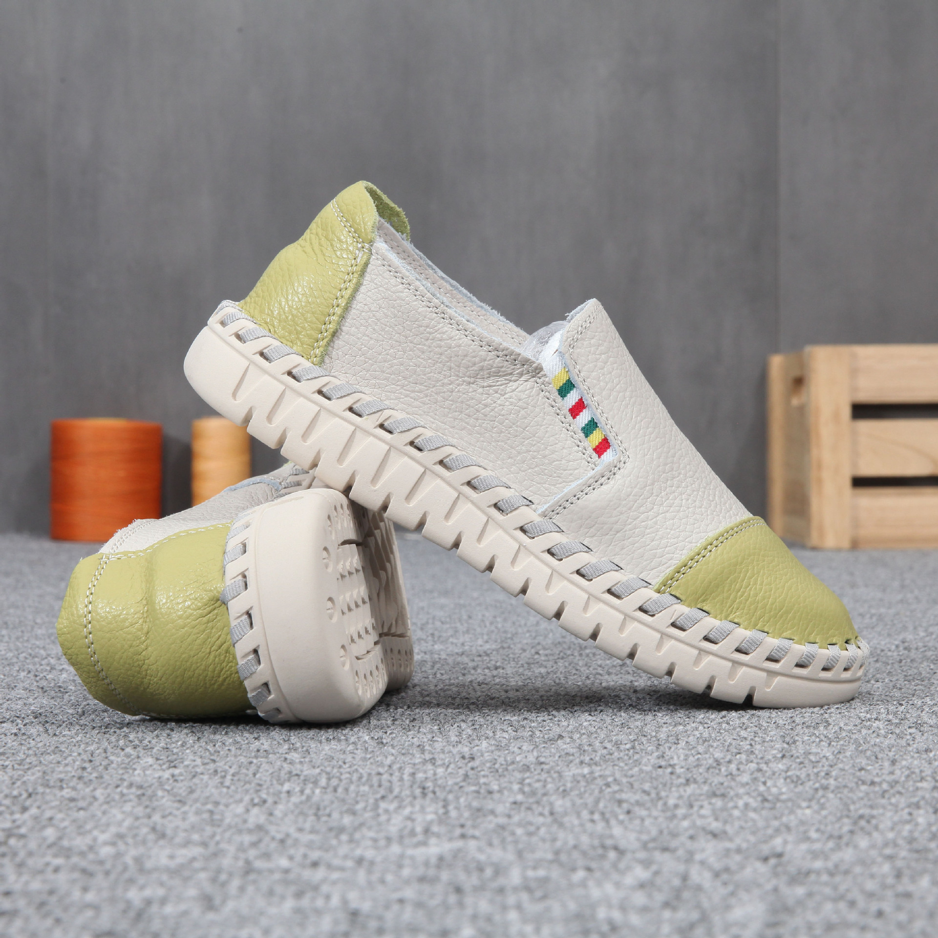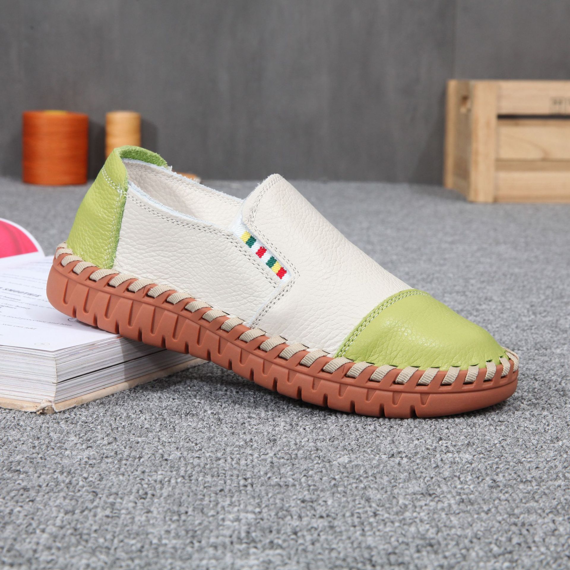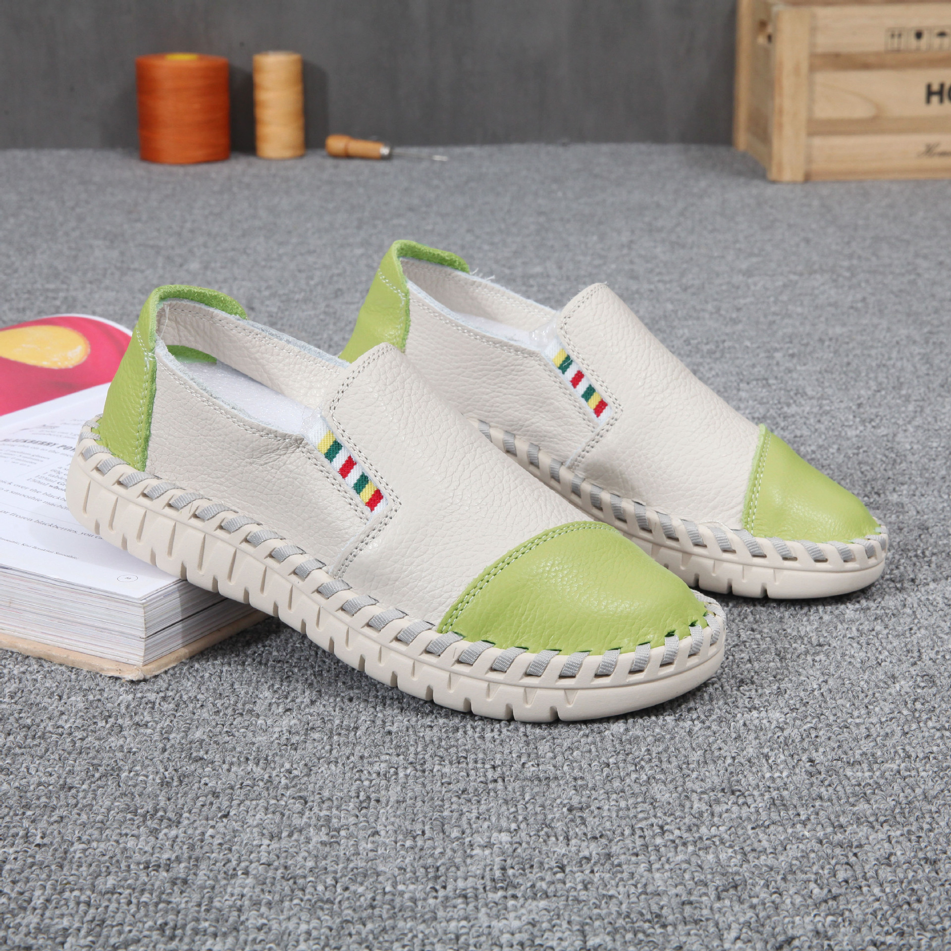 여성용 소가죽 화이트 슈즈, 부드러운 밑창과 표면의 로퍼, 천연 가죽 플랫 슈즈, 여성용 플랫 슈즈, 낮은 굽스토어 가기