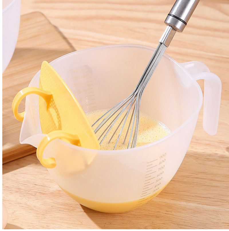 일본식 계란 액 필터 볼 가정용 베이킹 투명 플라스틱 볼 스케일 믹싱 볼 필터 계량 컵 포함