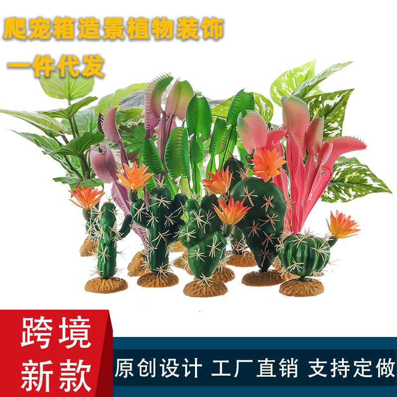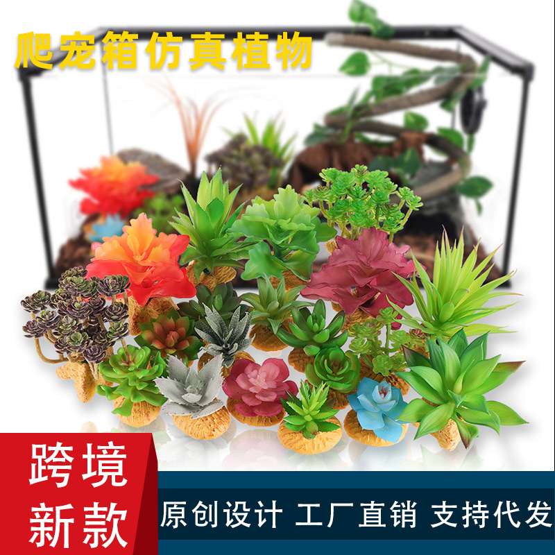 • 仿真多肉爬宠箱造景装饰仿真植物爬虫布景人造塑料绿植寄居蟹造景