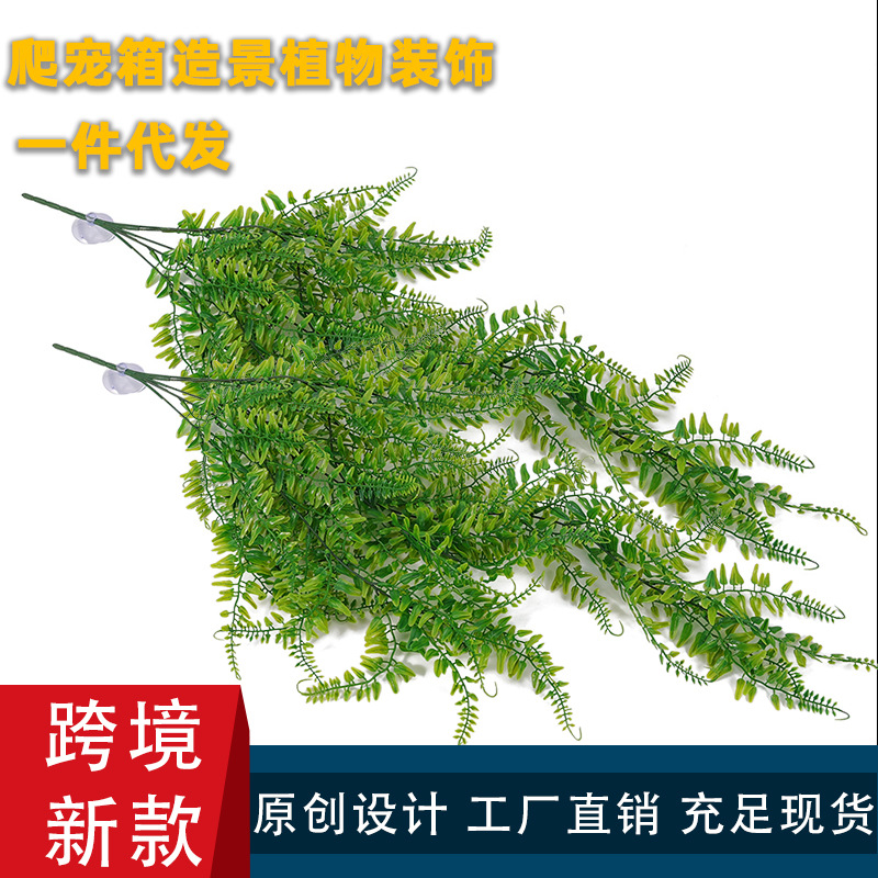 • 爬宠箱造景装饰植物仿真塑料人造波斯叶壁挂水草爬虫绿植装饰