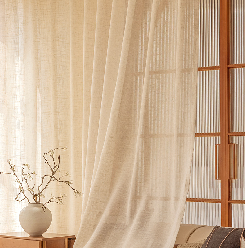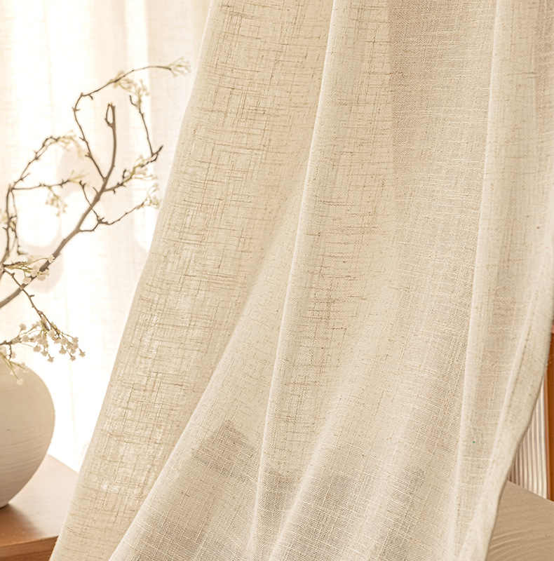 일본식 린넨 샌드 커튼 거즈 커튼 투명하고 불투명 일본식 통나무풍 발코니 거실 면 린넨 창 스크린 하이레벨 느낌스토어 가기
