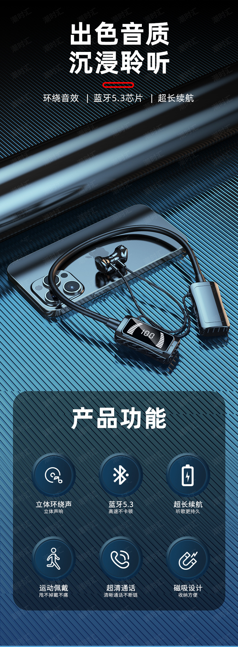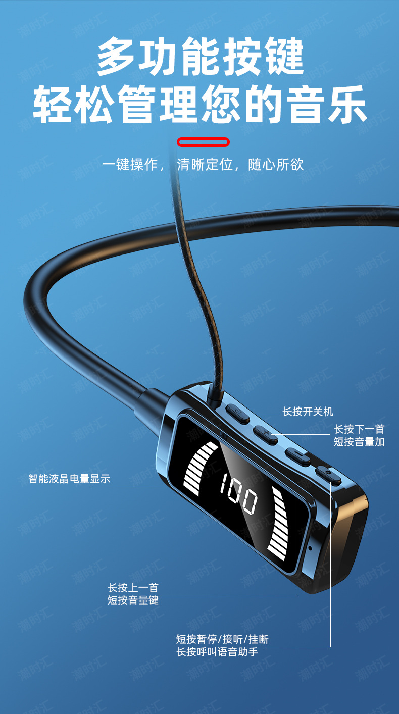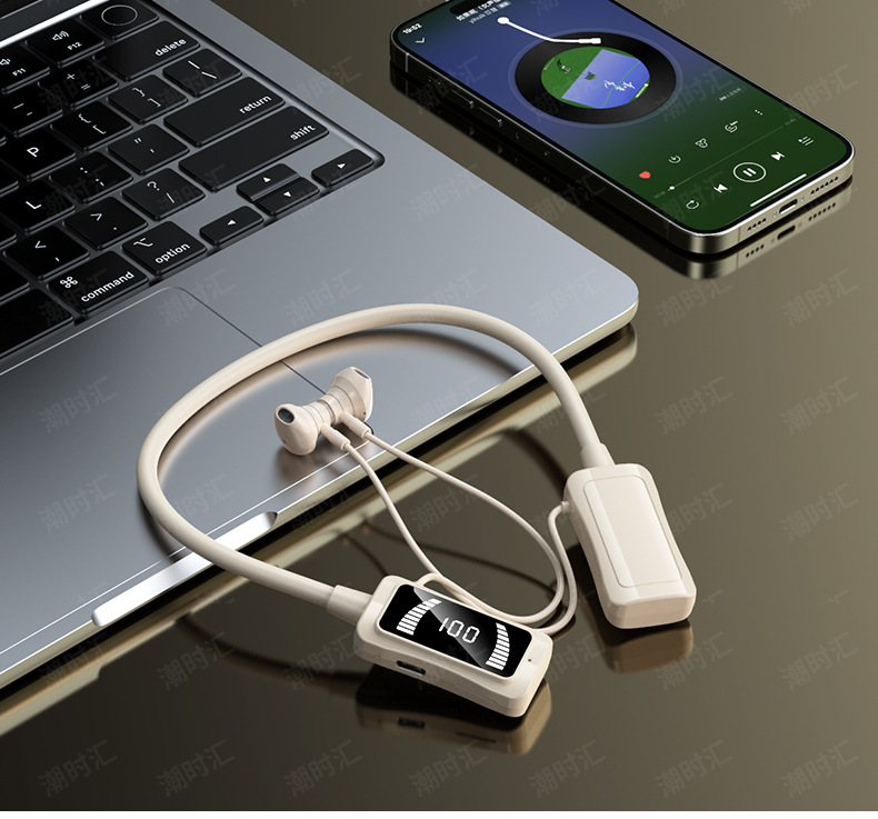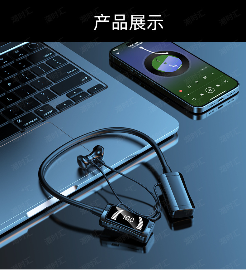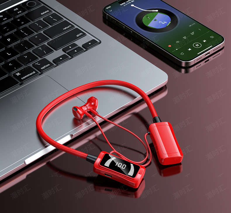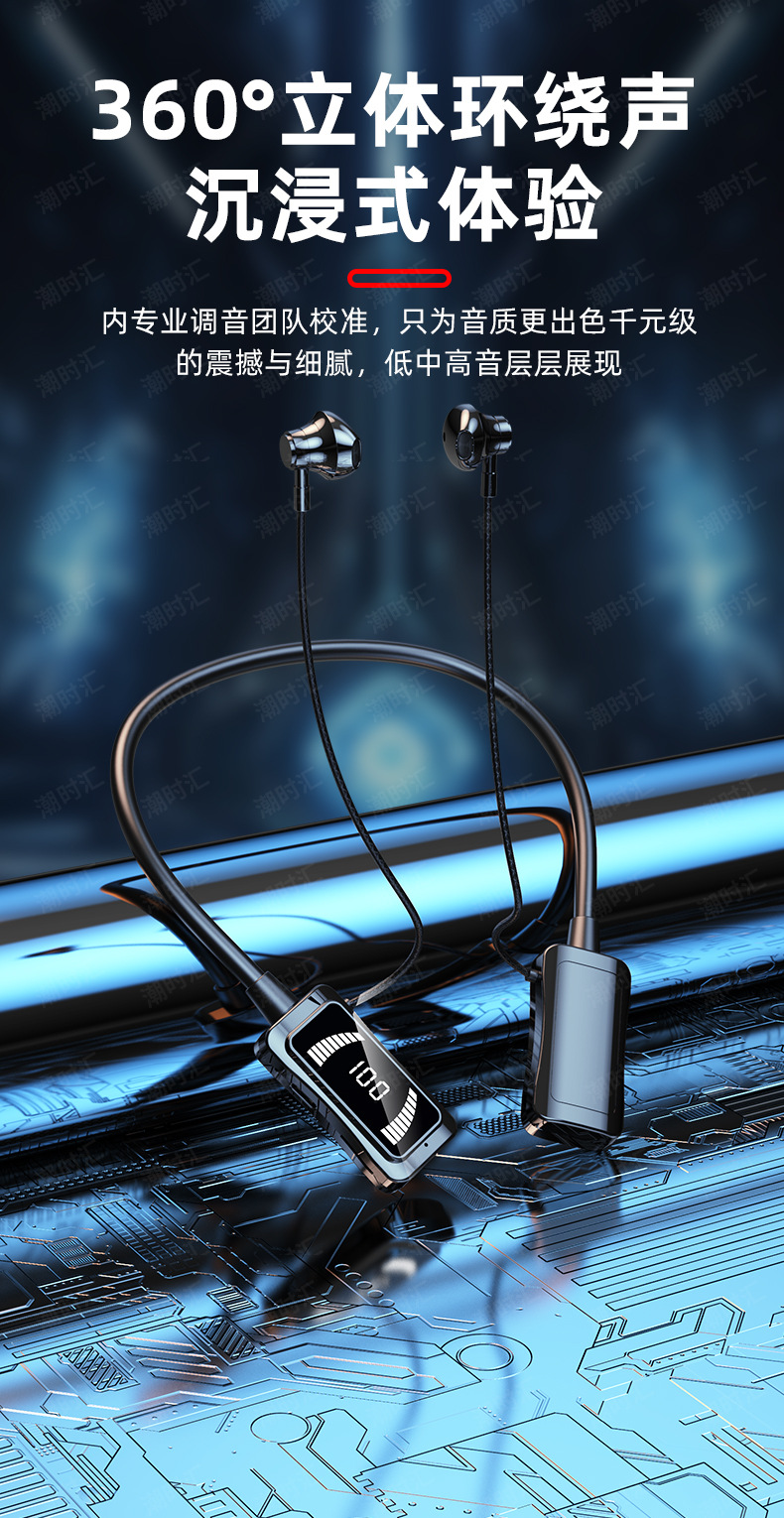 폭발 대형 배터리 교수형 목 블루투스 헤드셋 LED 스크린 전원 디스플레이 노래방 귀 다시 소스 공장 스트레이트 헤어에