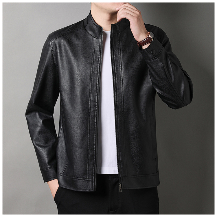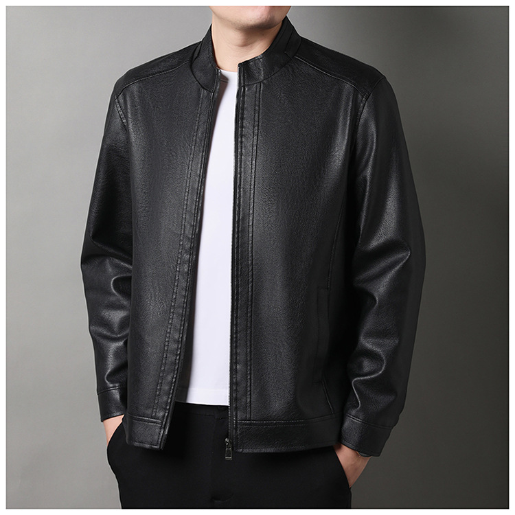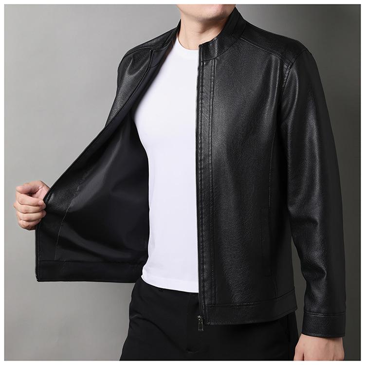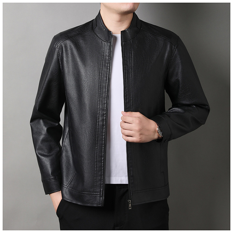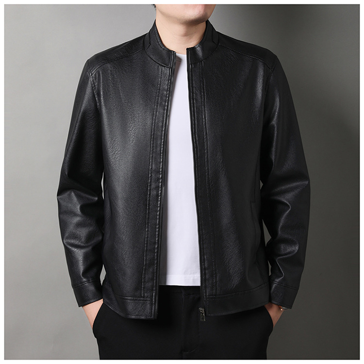 남성용 스탠드 칼라 가죽 재킷, 2025년 봄 가을 신상 트렌디 얇은 가을 겨울 바이커 소프트 PU 가죽 재킷스토어 가기