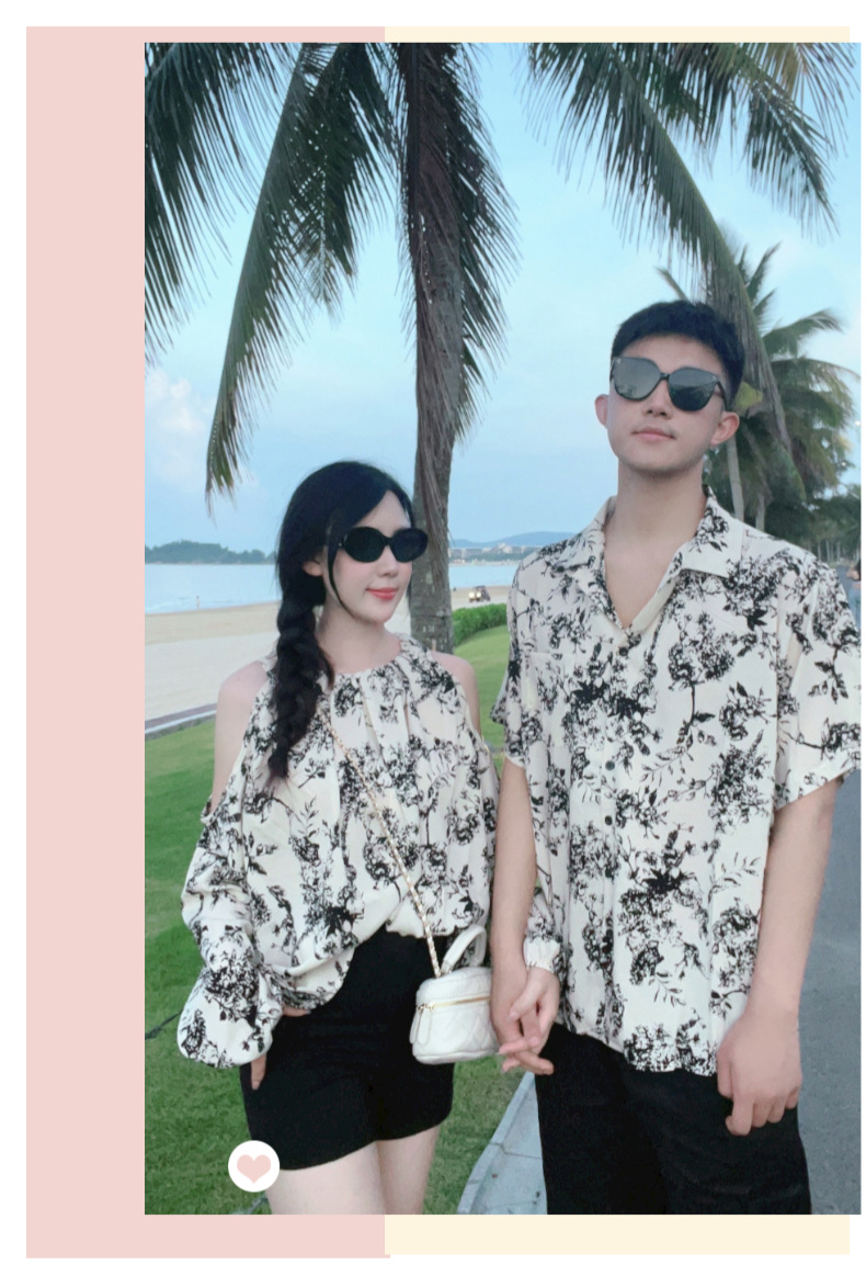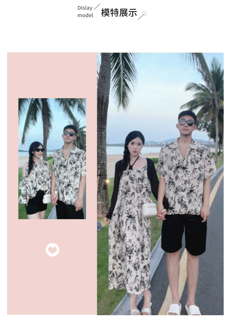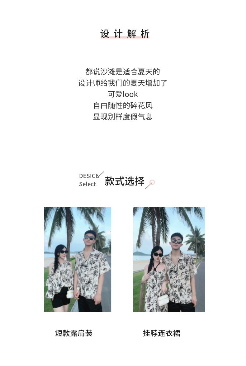 2023 커플 원피스 여름 원피스 디자인 목 어깨 탑 짧은 소매 셔츠 해변 해변 휴가 스타일