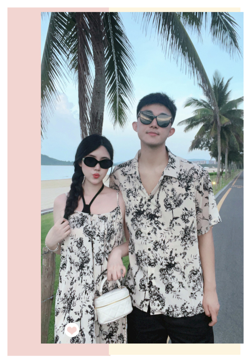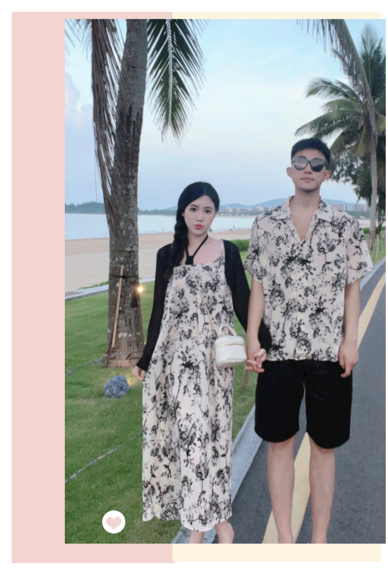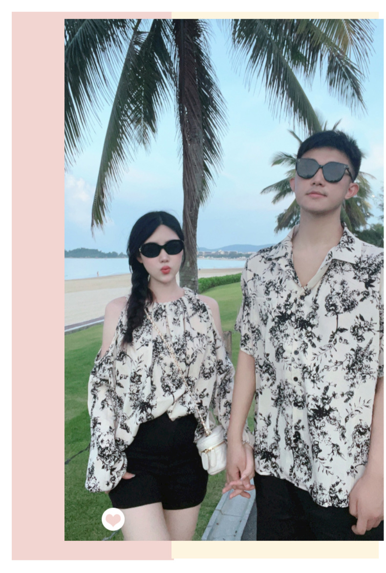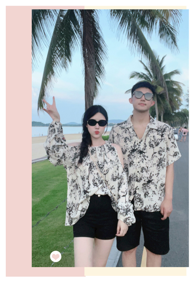 2023 커플 원피스 여름 원피스 디자인 목 어깨 탑 짧은 소매 셔츠 해변 해변 휴가 스타일