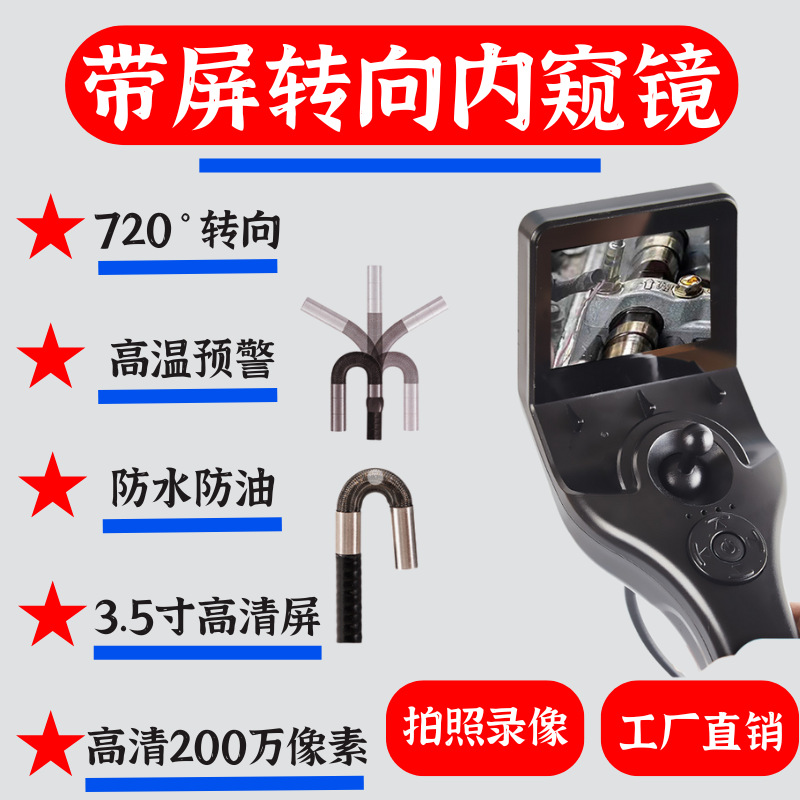 화면 장착 스티어링 내시경 직경 6mm HD 엔진 탄소 침착 물 검사 산업용 파이프 라인 검사 카메라스토어 가기