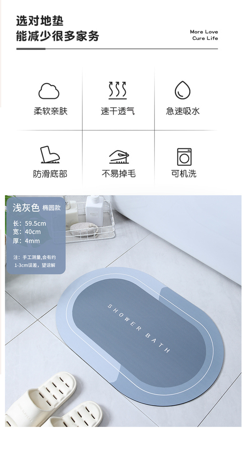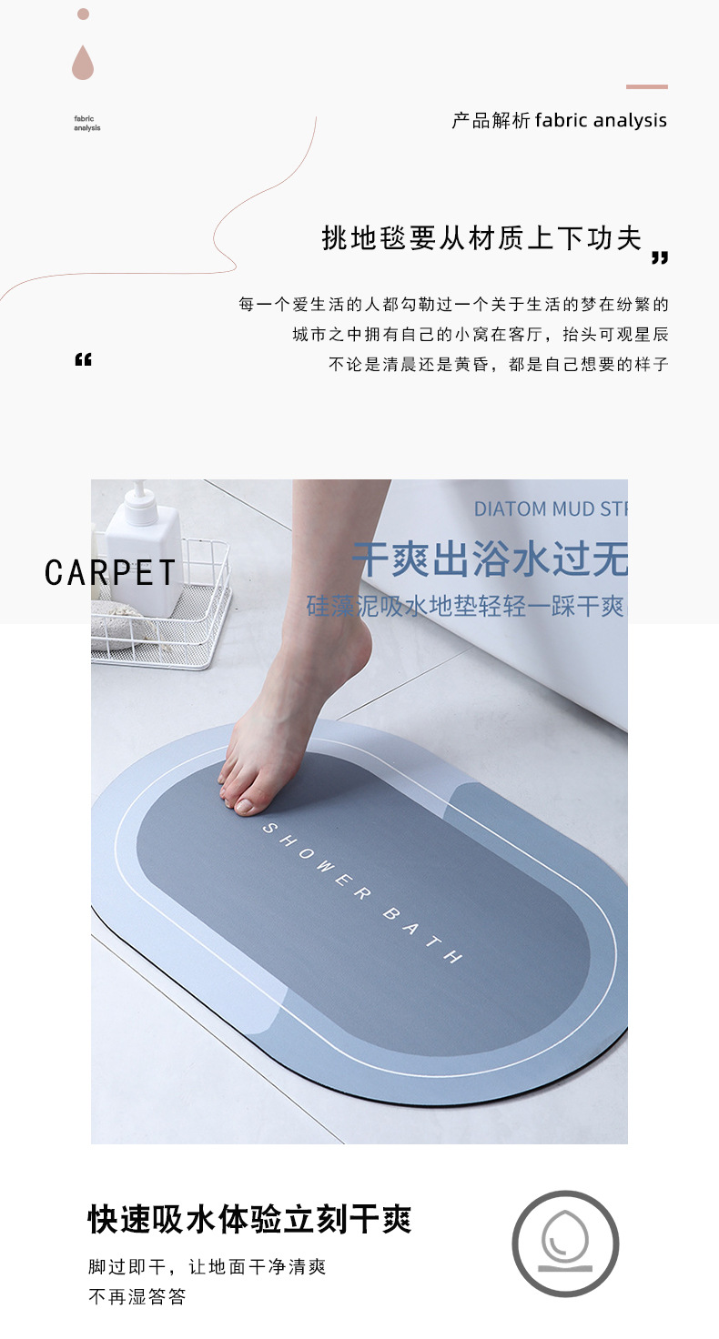 부드러운 규조토 미끄럼 방지 욕실 도어 매트 주방 욕실 규조토 진흙 흡수성 속건 도어 매트 모발 생성