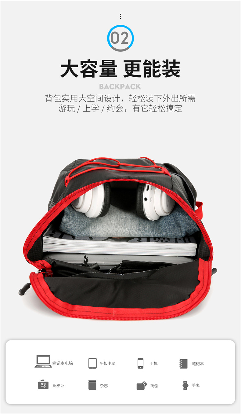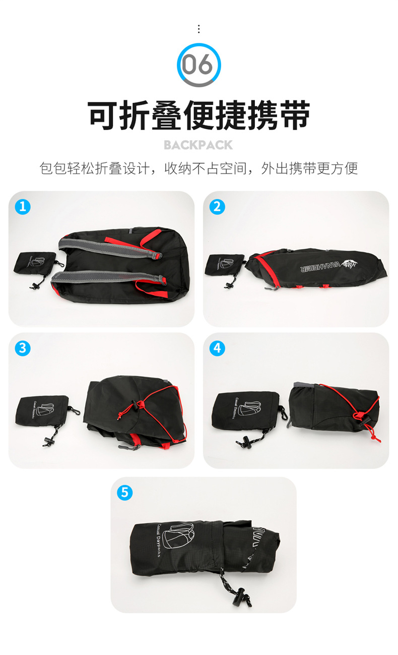 등산 가방 여행 경량 접이식 발수 수납 백팩 야외 스포츠 단색 대용량 지퍼 백팩