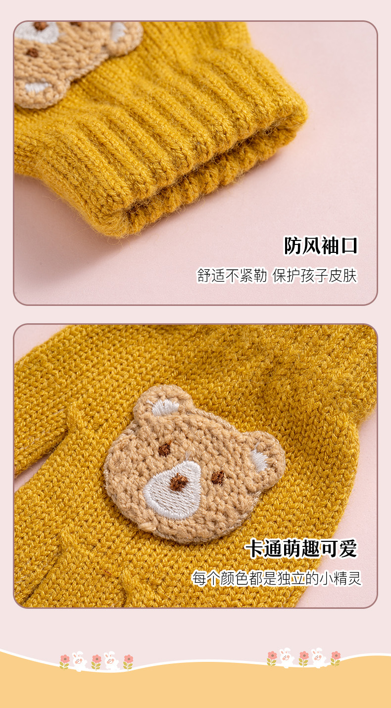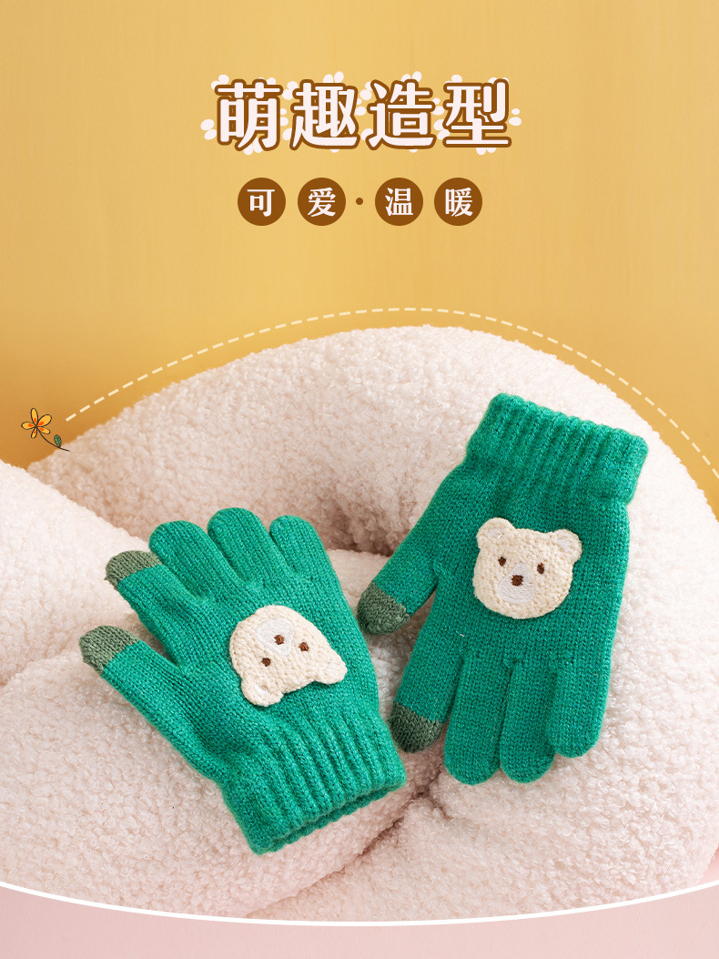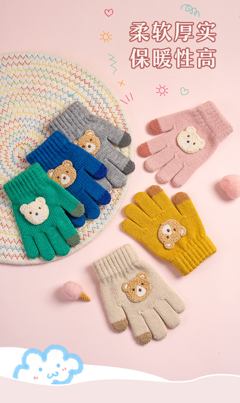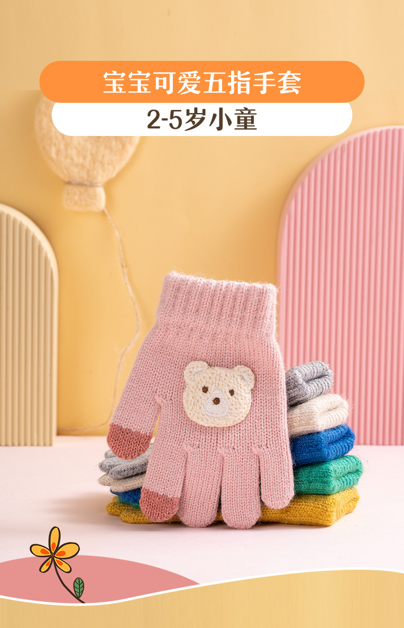 어린이 장갑 가을과 겨울 새로운 소년 소녀 만화 곰 방한 따뜻한 아기 다섯 손가락 양모 니트 장갑