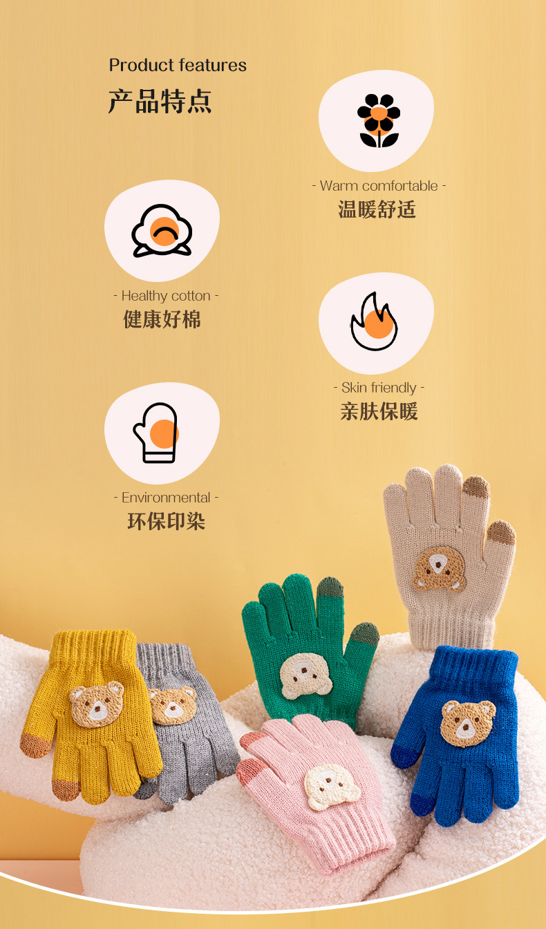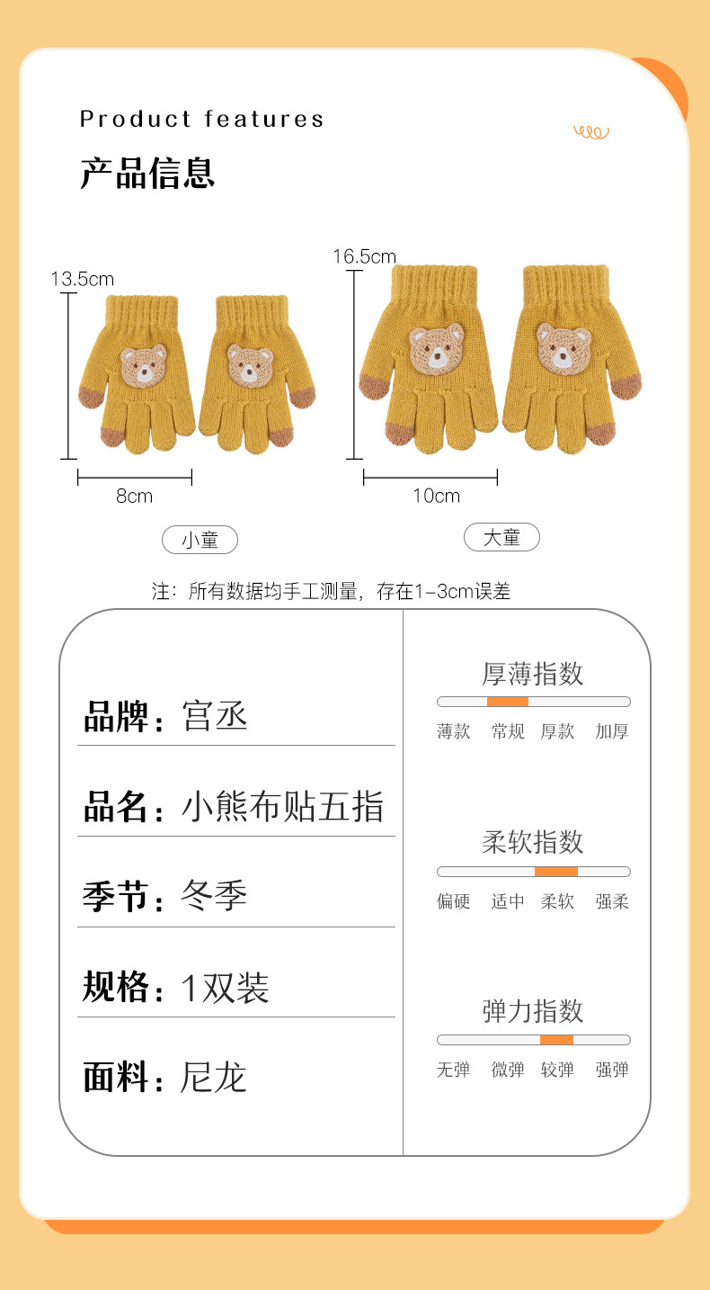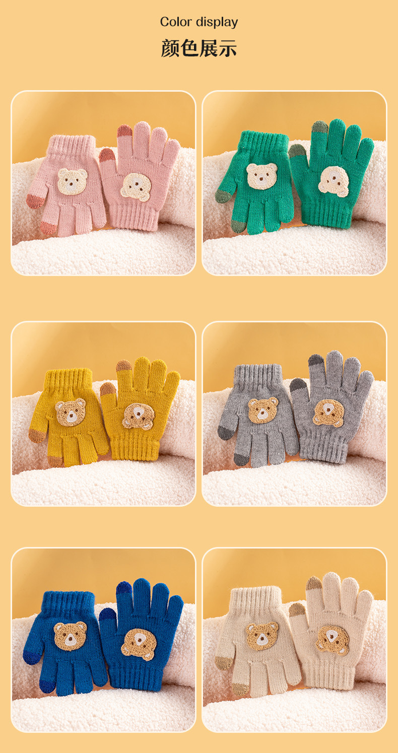 어린이 장갑 가을과 겨울 새로운 소년 소녀 만화 곰 방한 따뜻한 아기 다섯 손가락 양모 니트 장갑