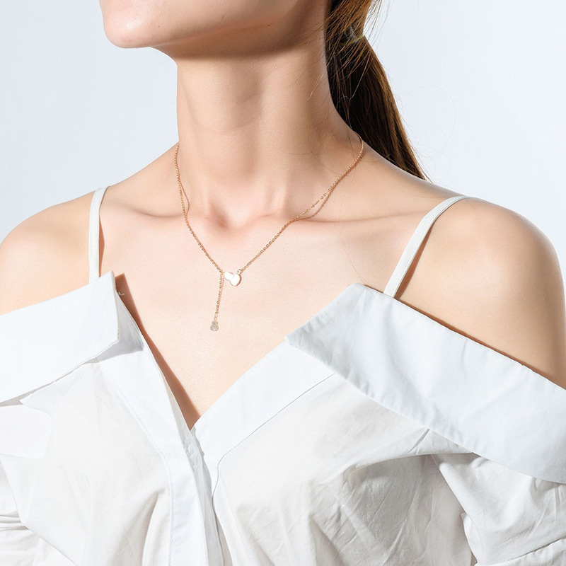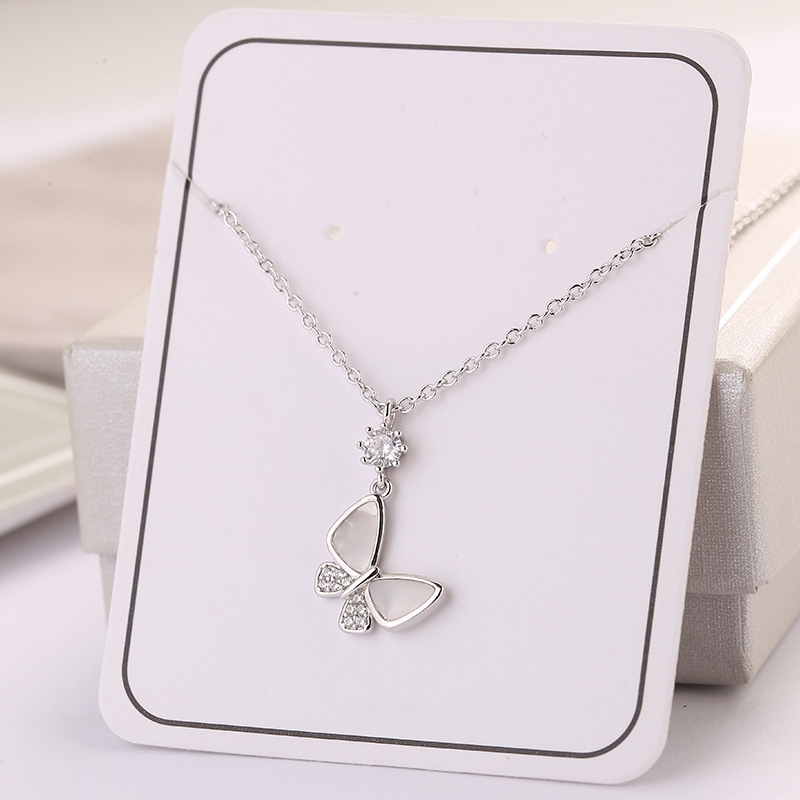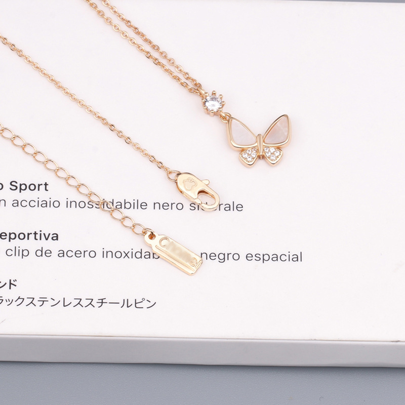 싱가포르 새로운 스타일 천연 화이트 쉘 나비 목걸이 여성 간단한 마이크로 상감 다이아몬드 쇄골 체인 인터넷 축하 같은 스타일스토어 가기