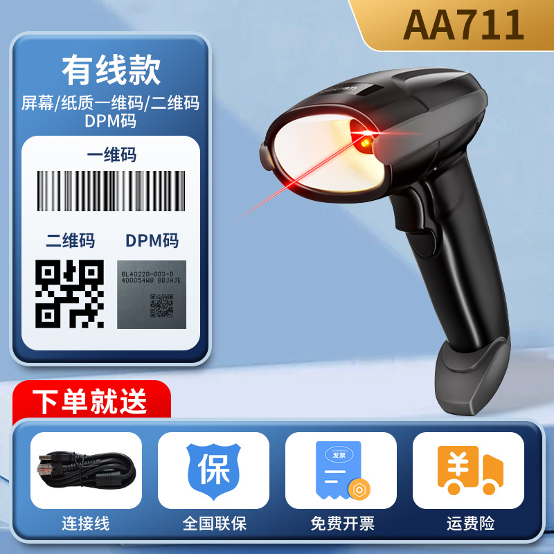 델리 AA711 산업 등급 코드 스캔 총 고정밀 고감도 상인 슈퍼 캐셔 유선 DPM 코드 바코드 스캐너