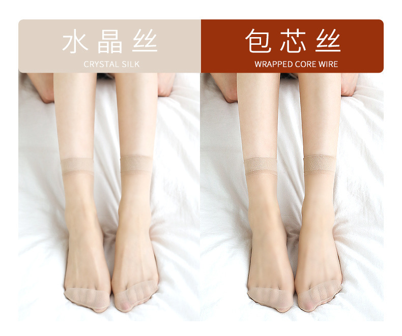 Langsha 2 쌍 짧은 실크 스타킹 여성의 초박형 여름 보이지 않는 투명 실크 스타킹 얇은 여성의 코어 스핀 실크 양말 Shang Chao스토어 가기