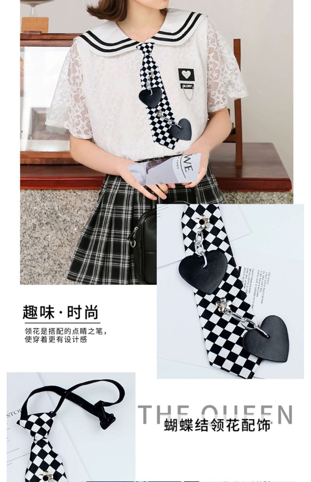 매듭이 필요 없는 JK 작은 넥타이, 여성 교복, 체크무늬, 와인 레드, 학생, 간편, 다용도, 컬리지 스타일, JK 교복, JK 스타일