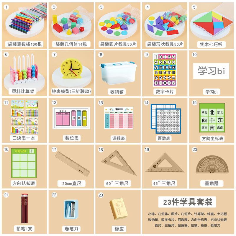 1 학년 수학 교육 보조 학습 도구 상자 세트 직소 퍼즐 초등학교 학생 카운터 기하학 그림스토어 가기