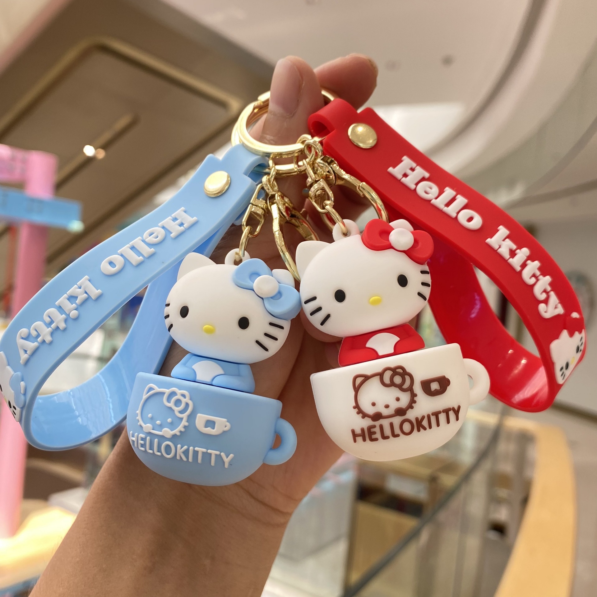 만화 산리오 KT 고양이 열쇠 고리 귀여운 pvc 인형 자동차 가방 펜던트 캐치 아기 기계 작은 선물 도매