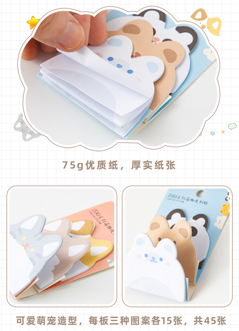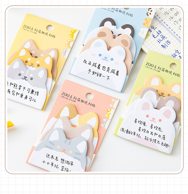 T 귀여운 동물 스티커 메모 메시지 n회 창의적인 핸드북 만화 스타일 스티커 메모 패드는 높은 외관과 찢을 수 있는 스티커로 부착할 수 있습니다.