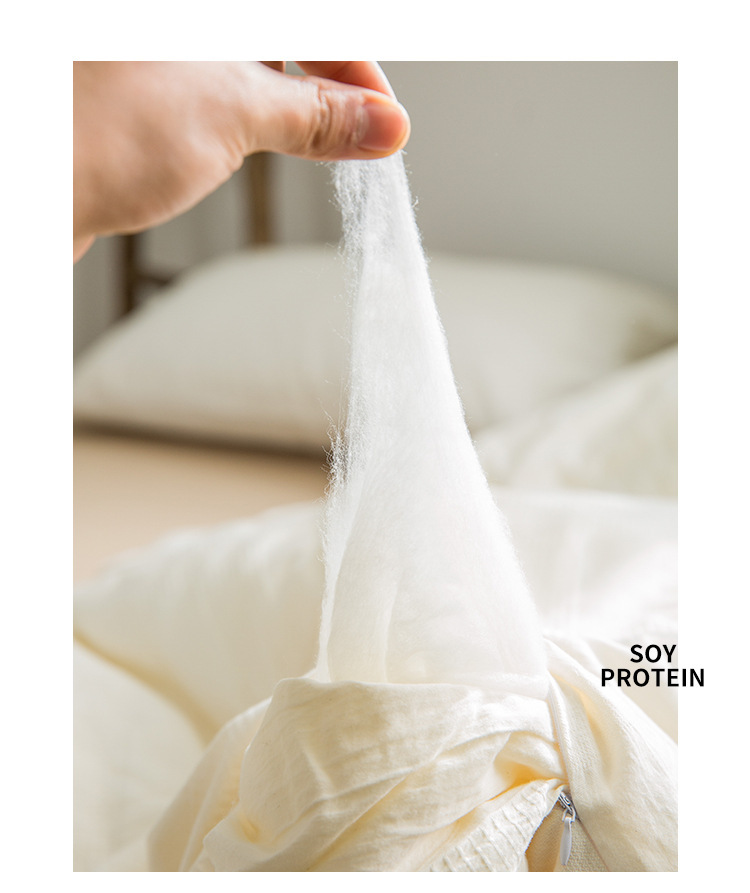大豆蛋白纤维是一种再生植物蛋白纤维,无甲醛,无致癌芳香胺羊绒般软糯,蚕丝般柔和光泽,棉的保暖亲肤。