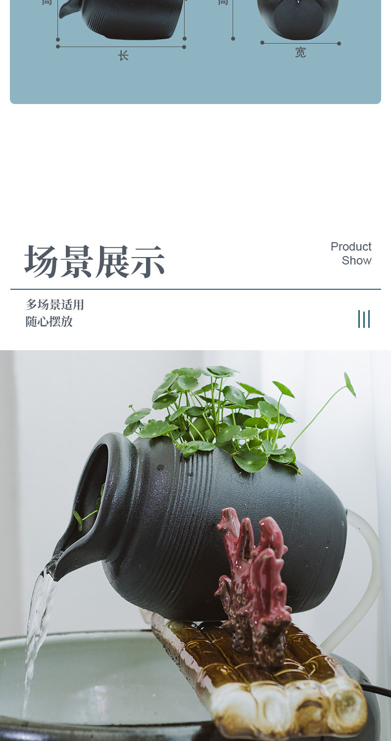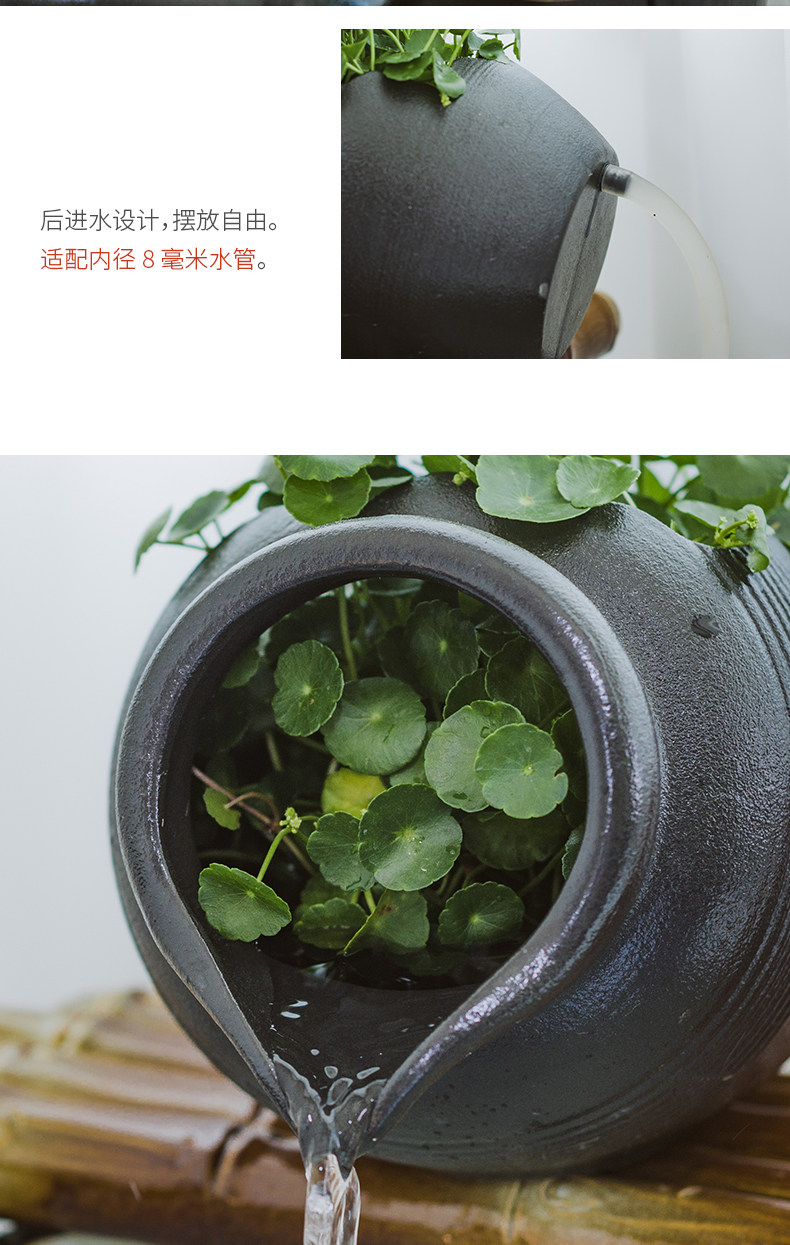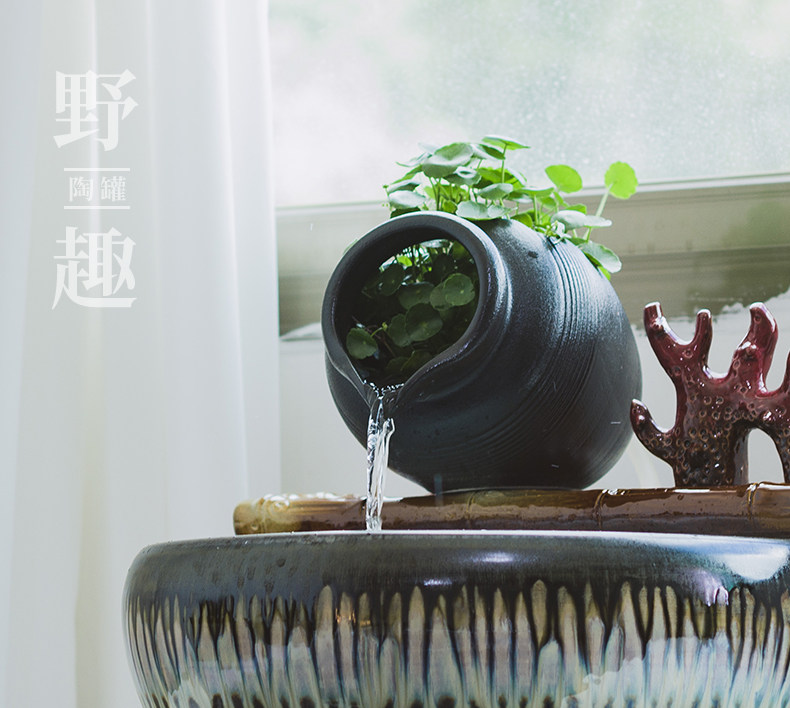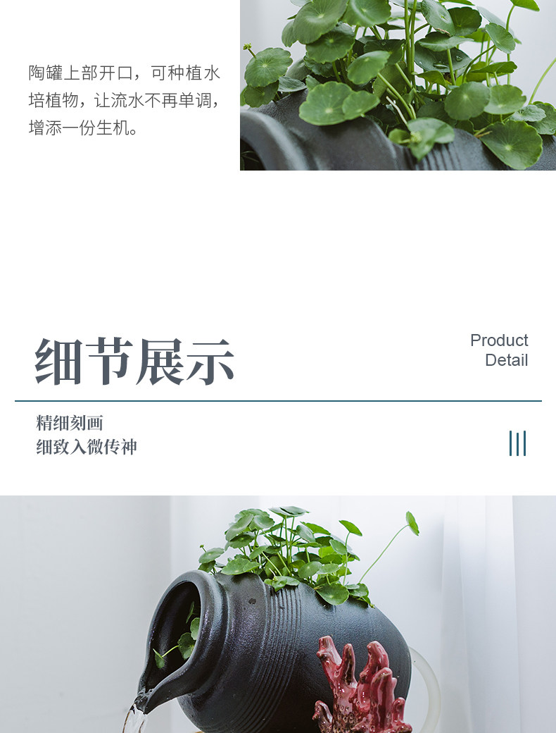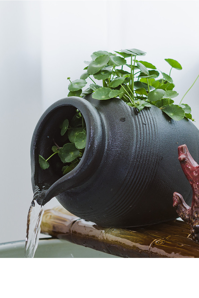 고대의 방법 물고기 문화 탱크 도자기 항아리 복고풍 흐르는 물 순환 장식 장식품 수경 녹색 식물 늪 필터 꽃병 조경스토어 가기