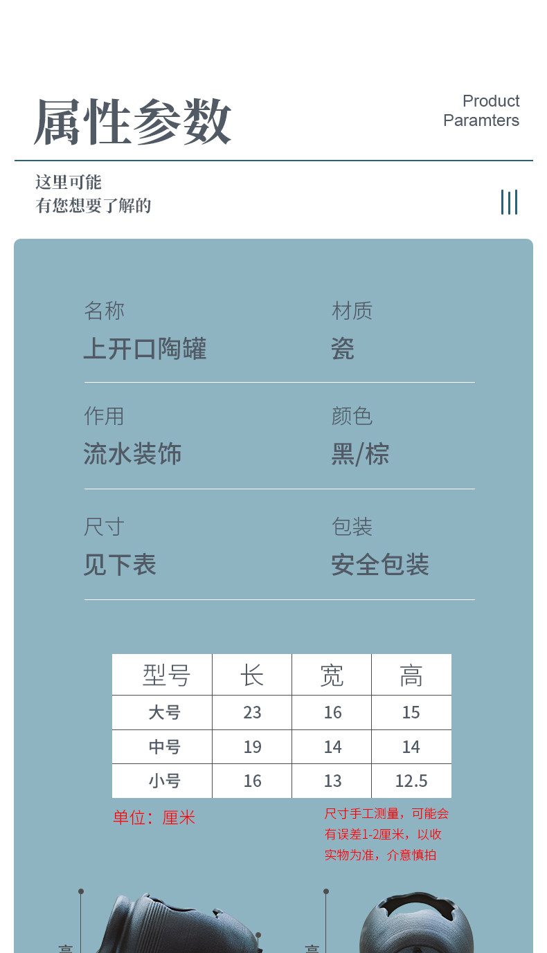 • 대형 다크 브라운 후면 물 개방 점토 냄비