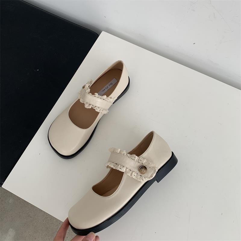 부드러운 소녀 신발 여성용 봄과 여름 2023 모든 경기 대학 스타일 플랫 하단 스퀘어 헤드 버클 메리 제인 작은 가죽 신발 트렌디