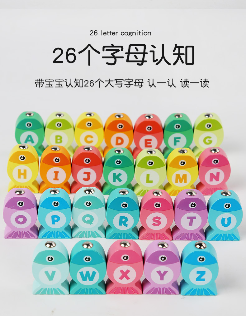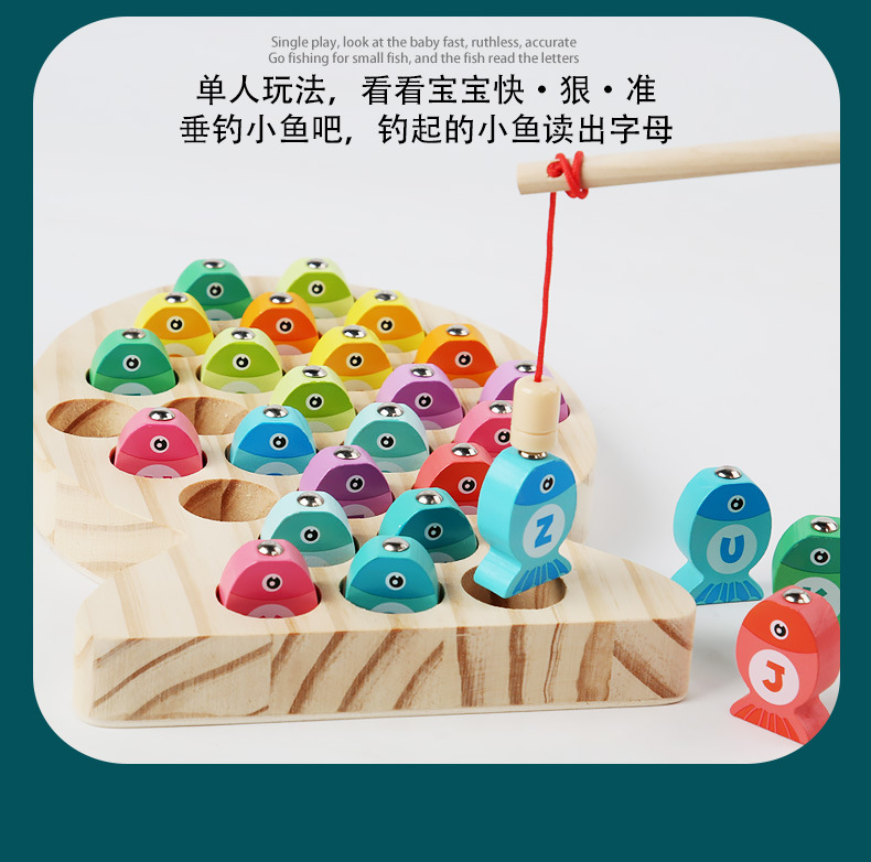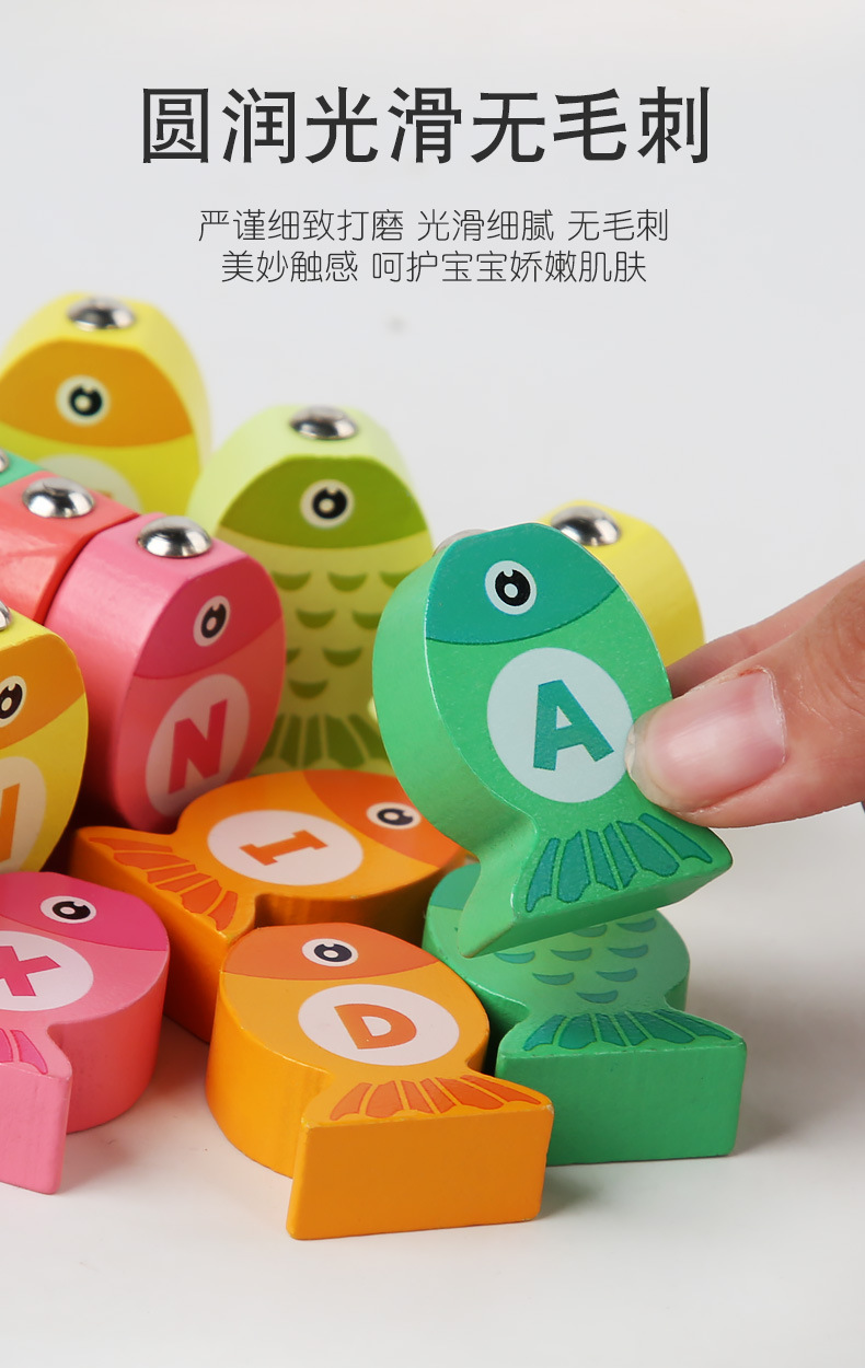 나무 어린이 자기 영숫자 낚시 장난감 아기 조기 교육 교육 기쁨 낚시 훈련 손 눈 조정