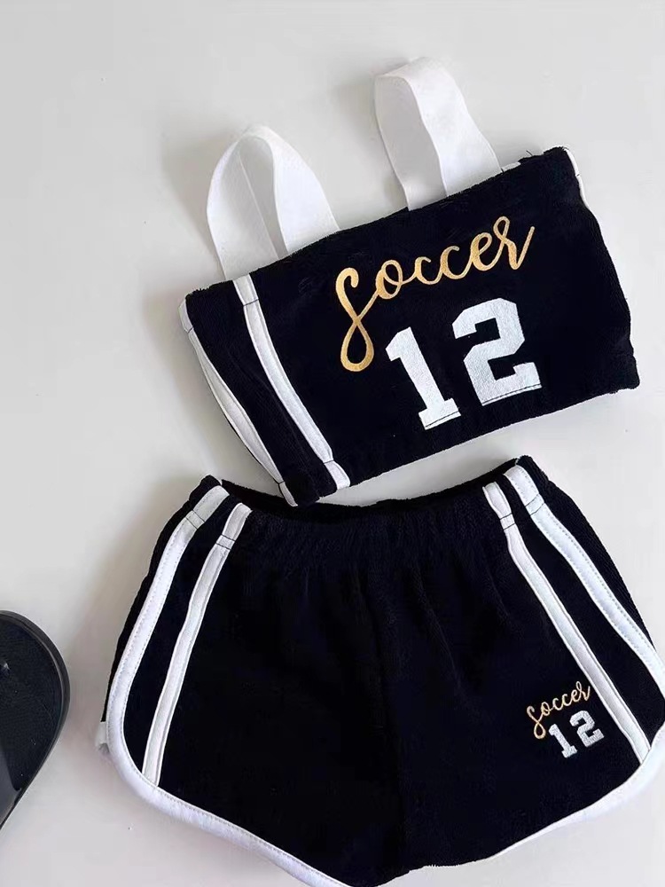 여름 스타일 알파벳 서스펜더 반바지 스포츠 슈트, 어린 소녀와 아기를 위한 세련된 투피스 세트스토어 가기