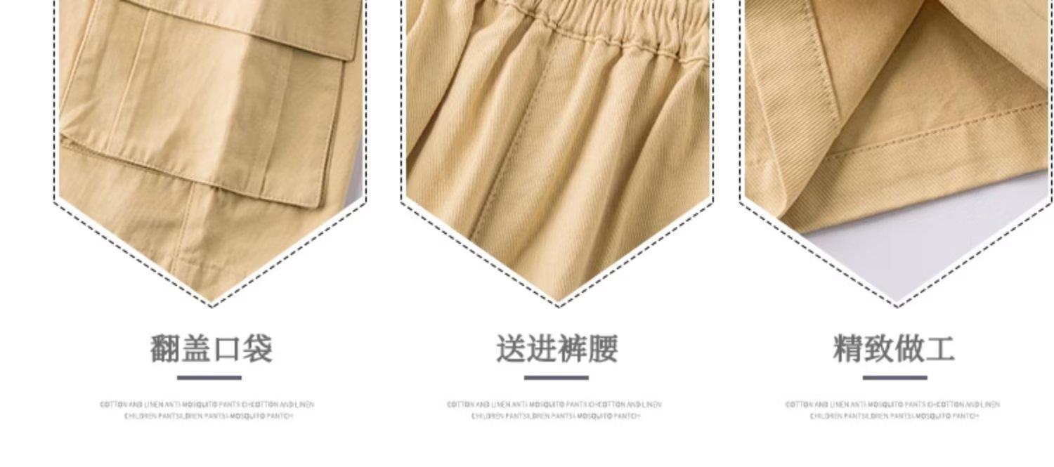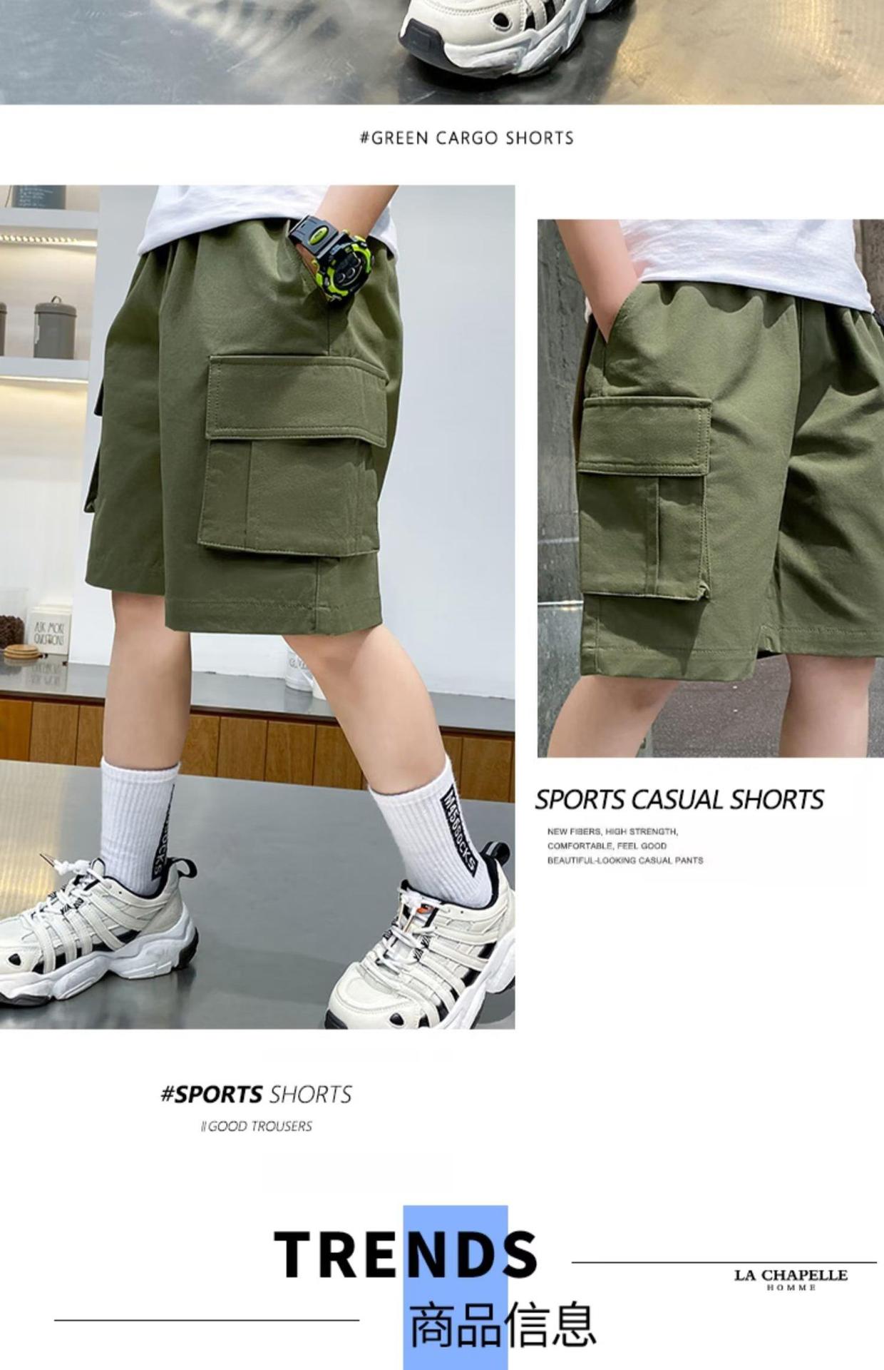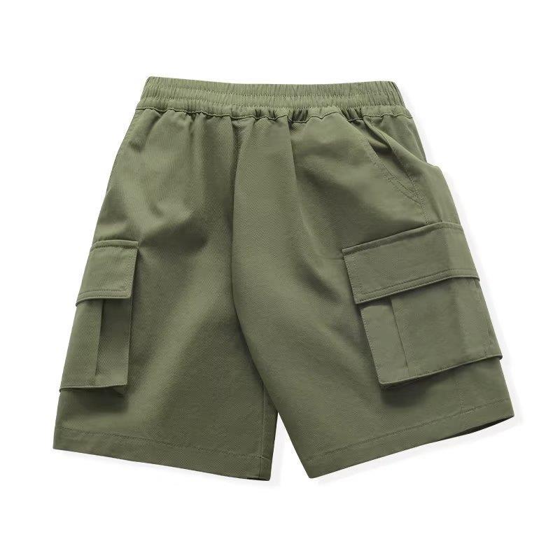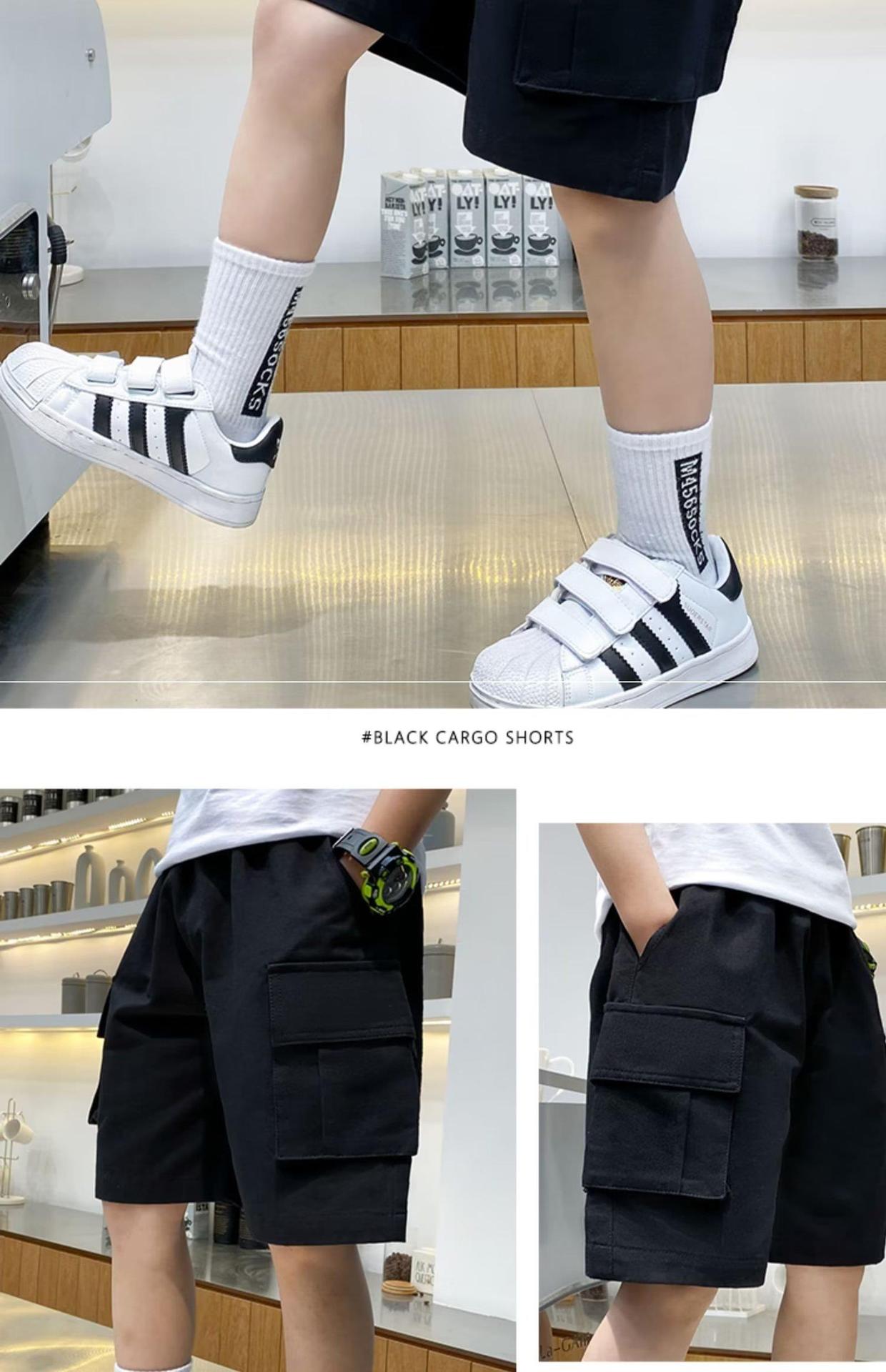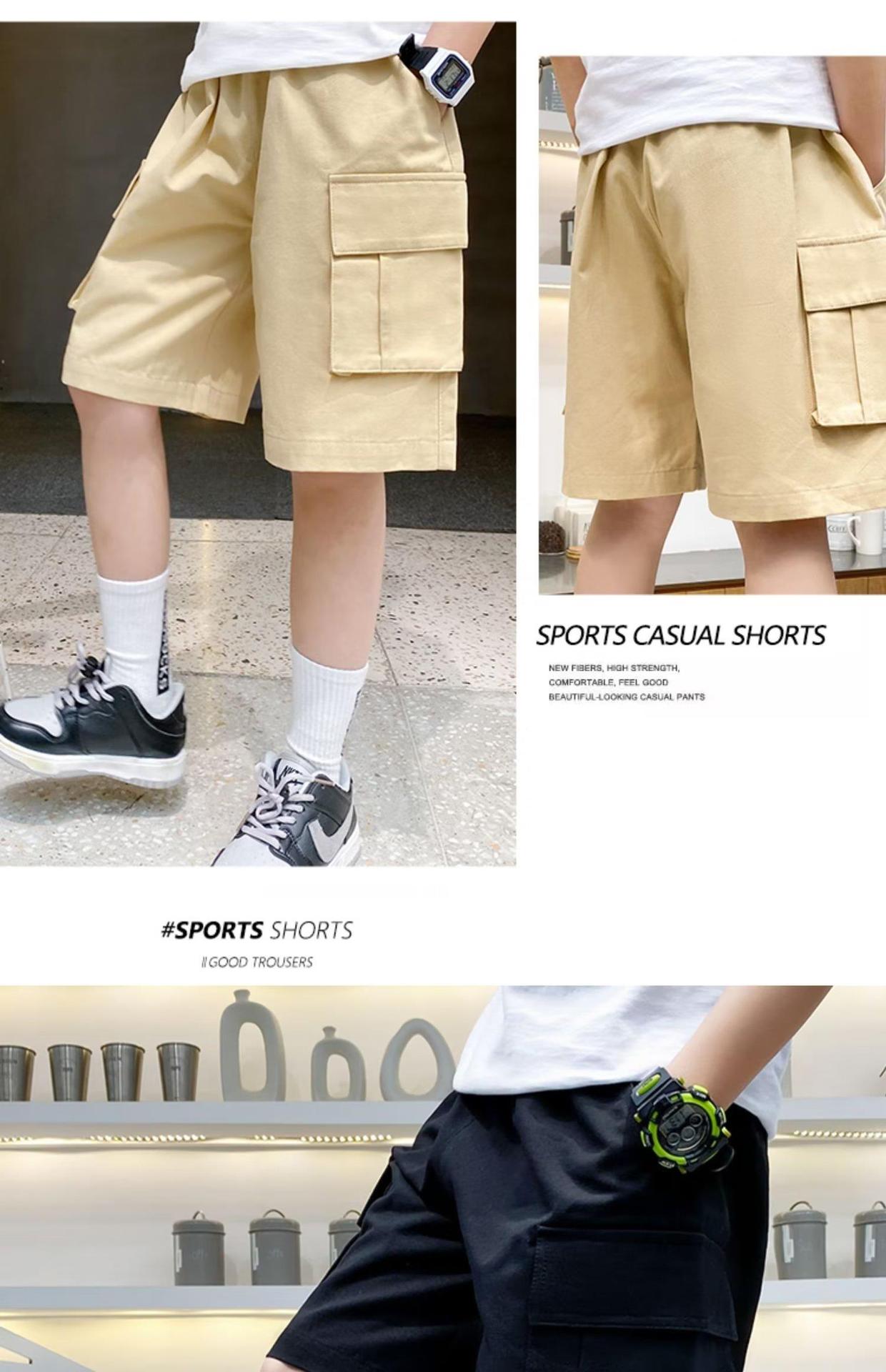 여름 얇은 소년 반바지 한국 스타일 느슨한 어린이 작업복 2025 새로운 소년 검은 바지 5 점 바지스토어 가기