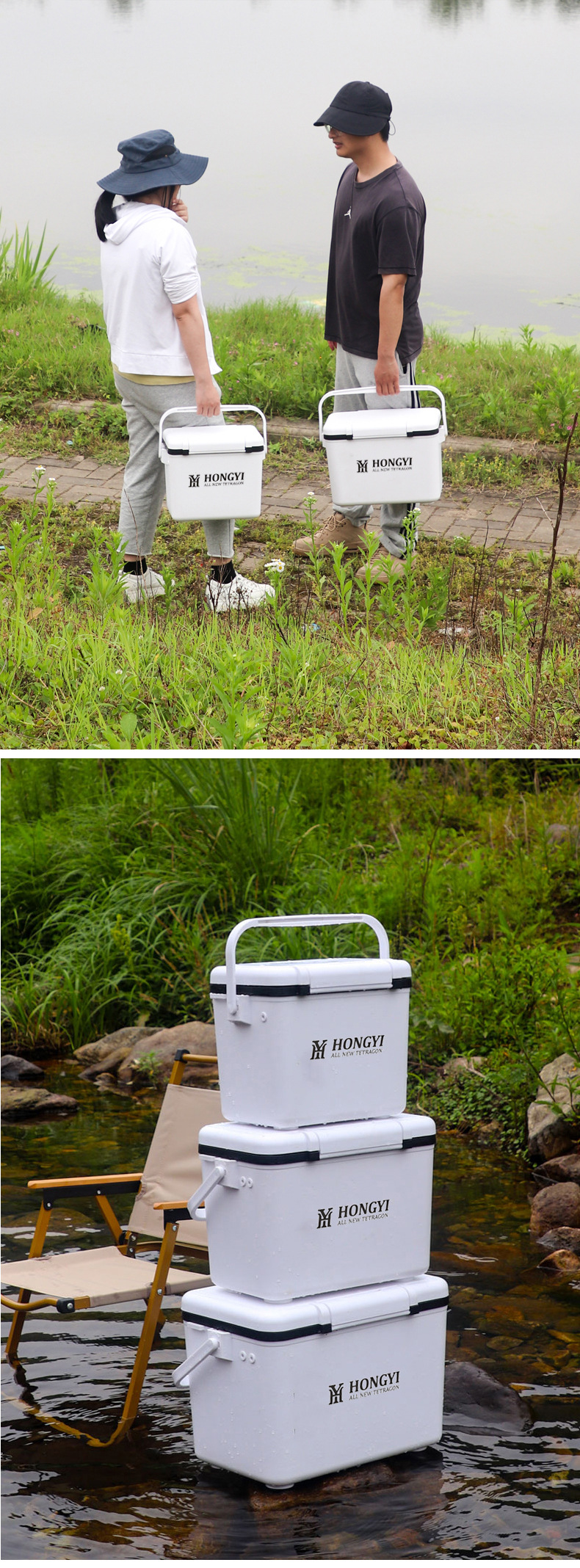 Hongyi 캠핑 테이크 아웃 냉장 상자 휴대용 스톨 식품 냉동 상자 아이스 큐브 야외 휴대용 절연 상자 냉장 상자