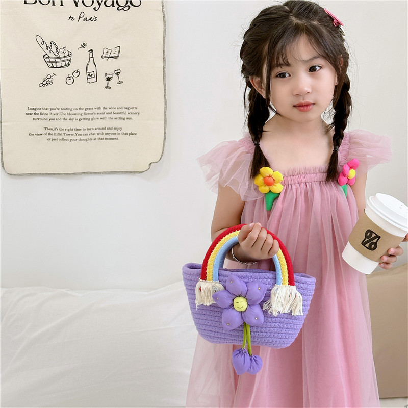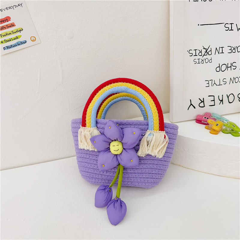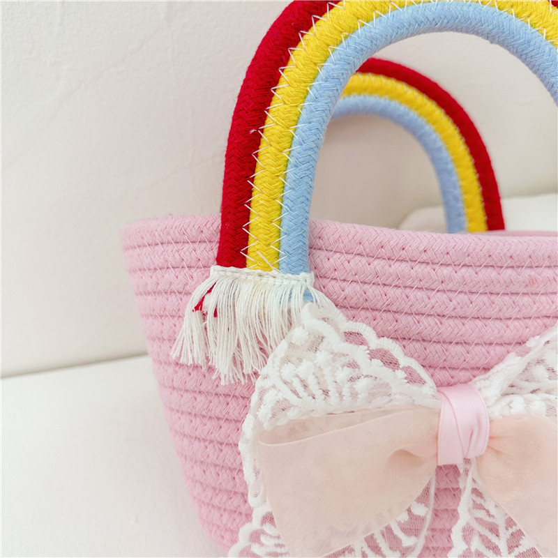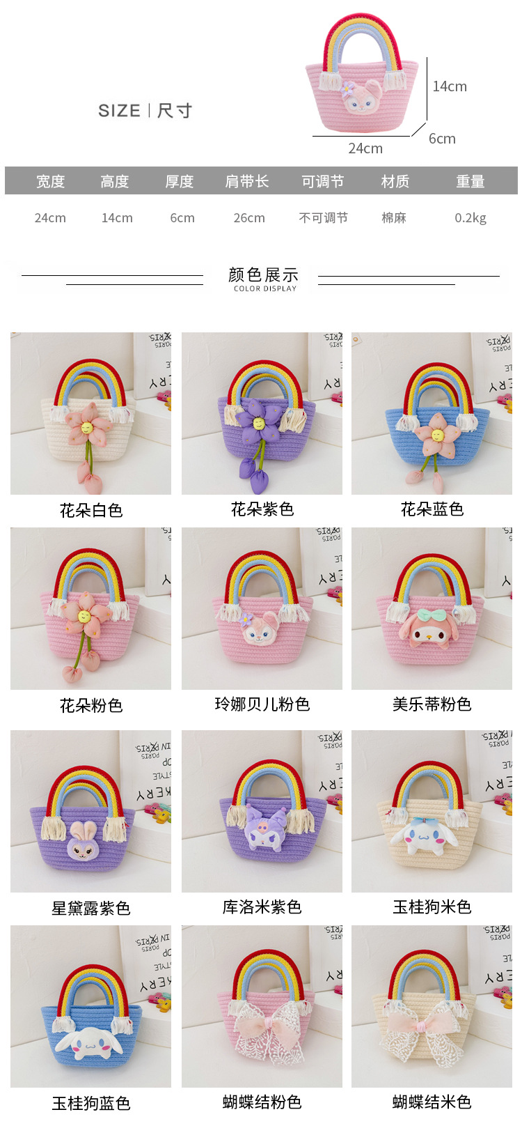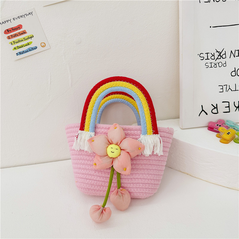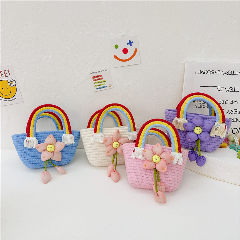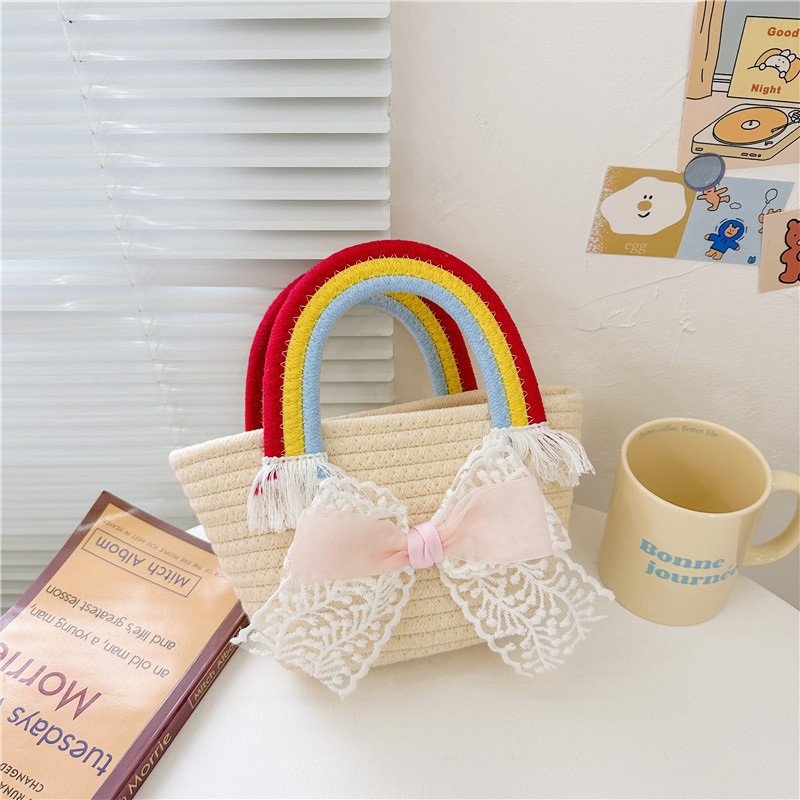여자 가방 2023 새로운 무지개 구름 핸드백 어린이 짠 가방 패션 대용량 밀짚 핸드백스토어 가기