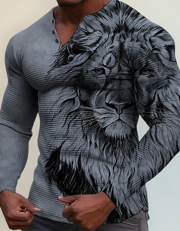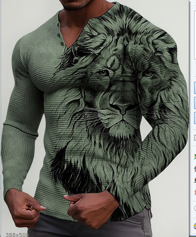 2023 국경을 넘는 새로운 아마존 유럽과 미국 봄과 가을 간단한 색상 일치 3D 인쇄 칼라 남성 캐주얼 셔츠스토어 가기