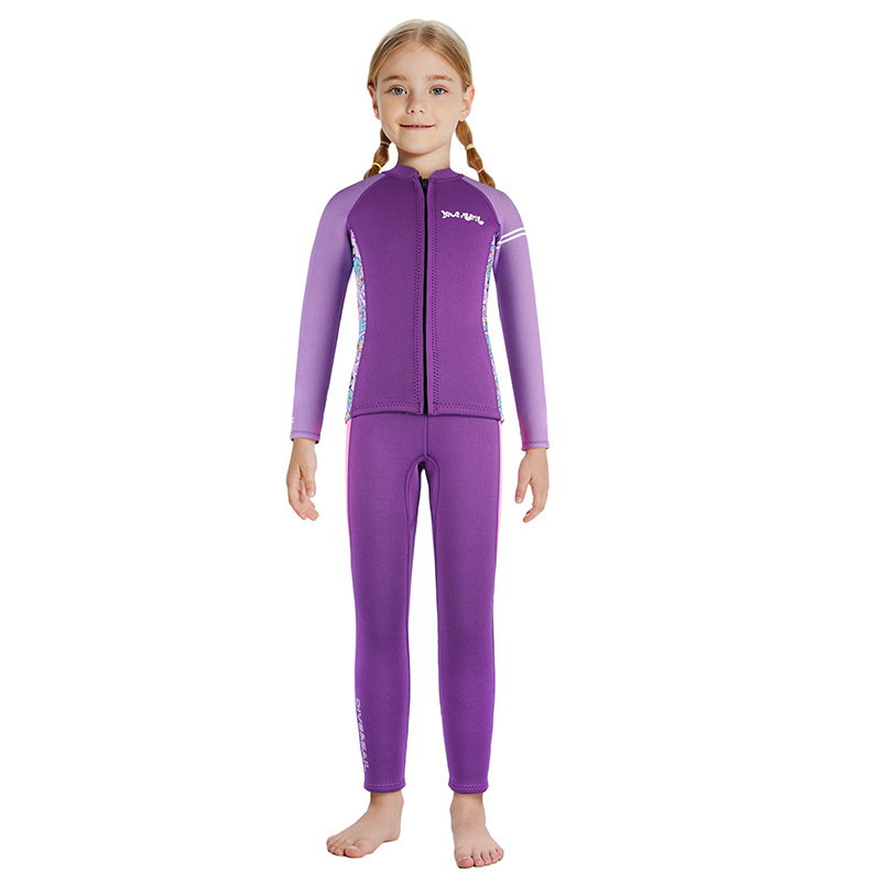 아마존 2.5MM 어린이 다이빙 세트 분할 긴 소매 바지 따뜻한 수영복 걸스 스노클링 서핑 다이빙 세트