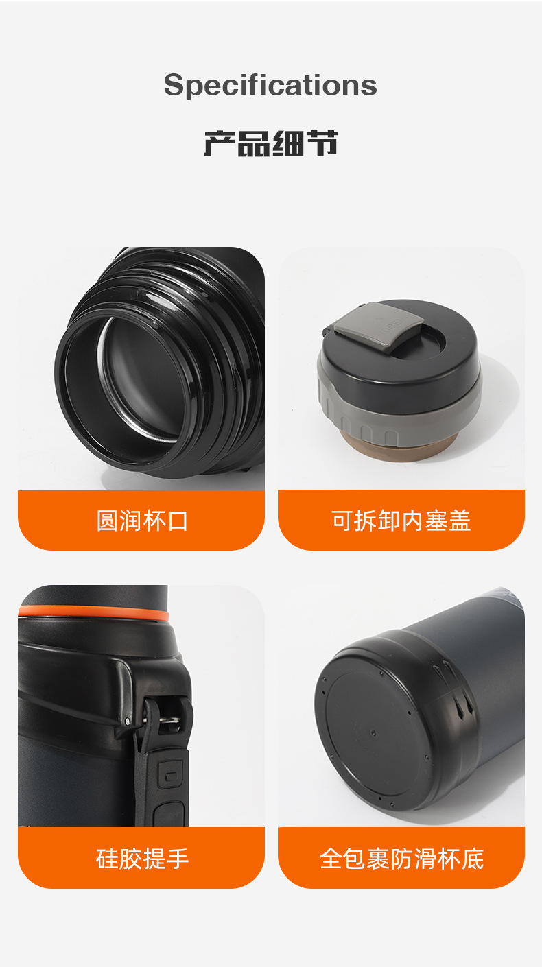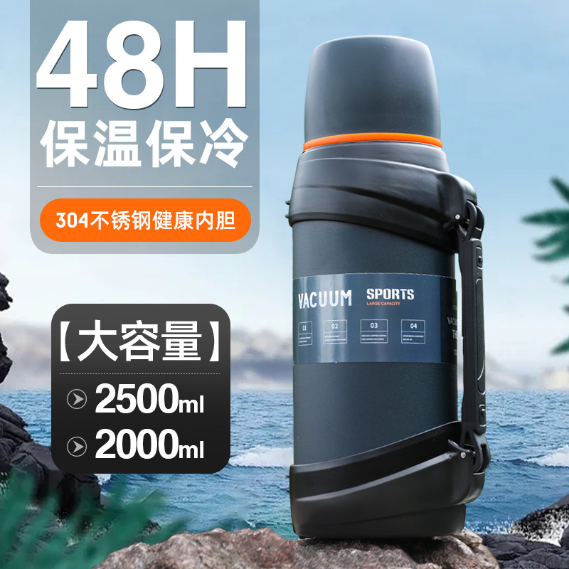 304 스테인레스 스틸 대용량 보온병 컵 미끄럼 방지 컵 하단 원 버튼 오픈 뚜껑 실리콘 휴대용 손잡이 등산 보온병 냄비