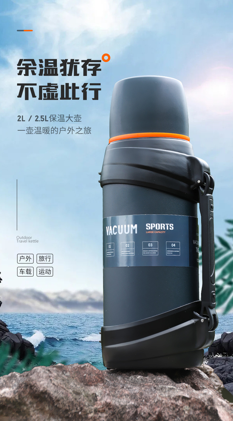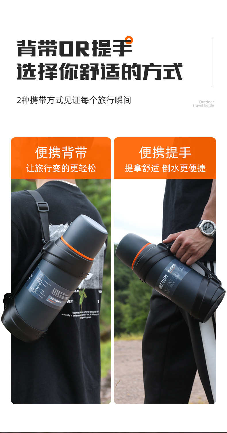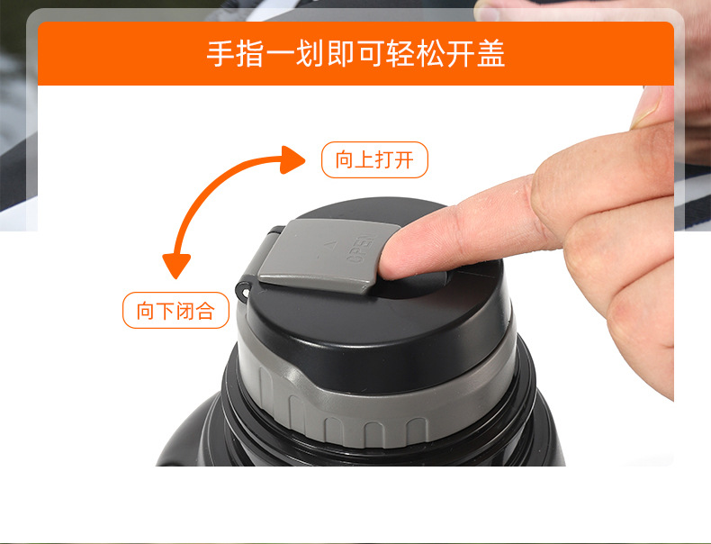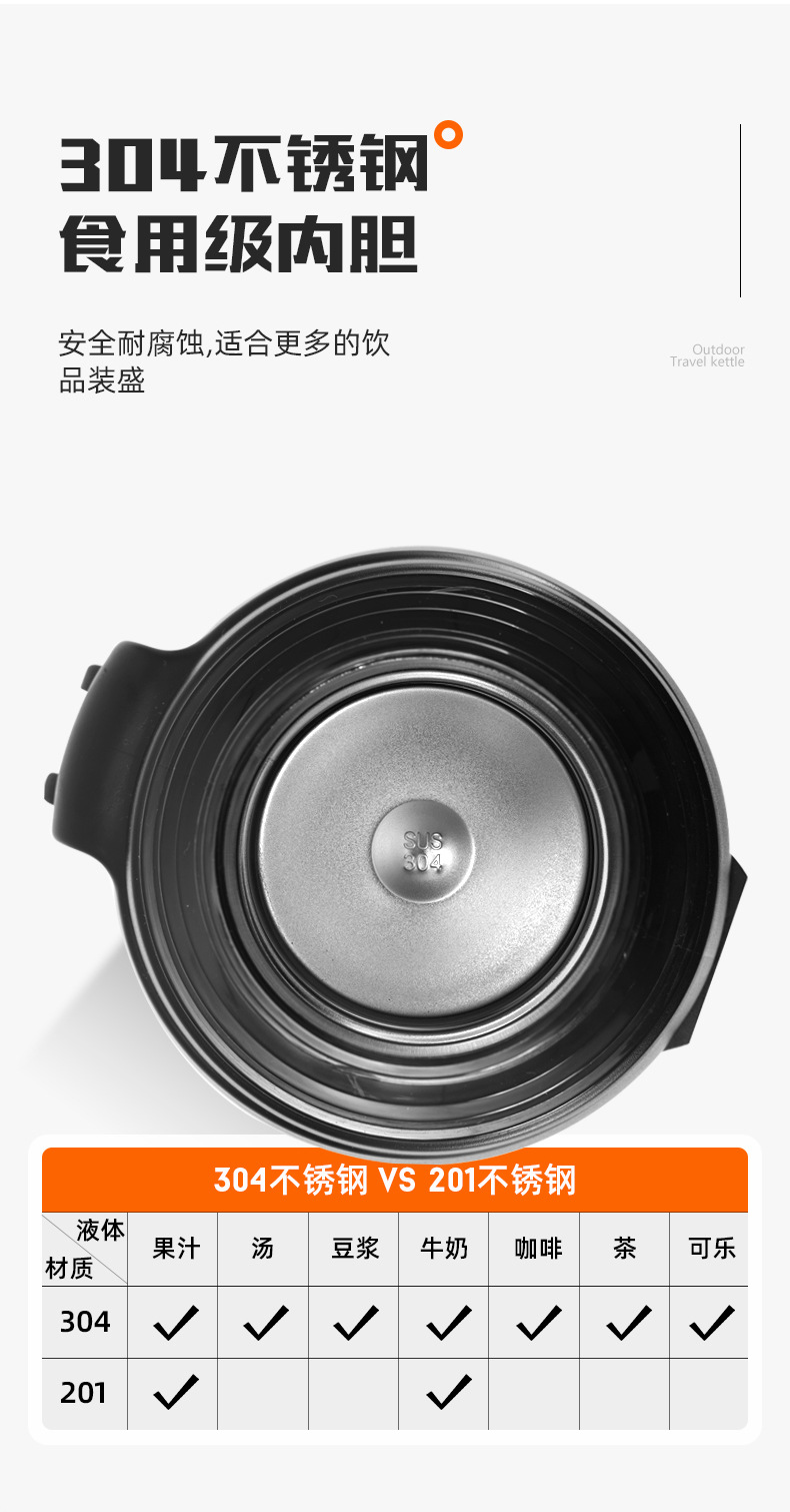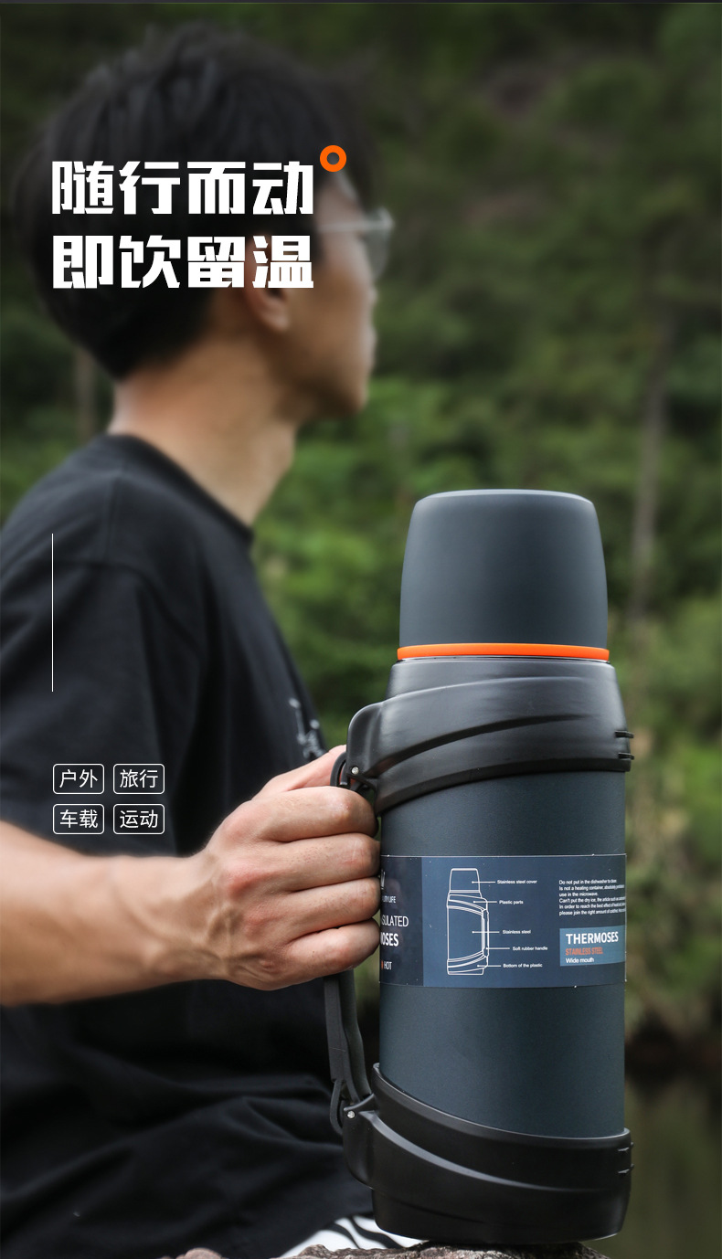 304 스테인레스 스틸 대용량 보온병 컵 미끄럼 방지 컵 하단 원 버튼 오픈 뚜껑 실리콘 휴대용 손잡이 등산 보온병 냄비스토어 가기