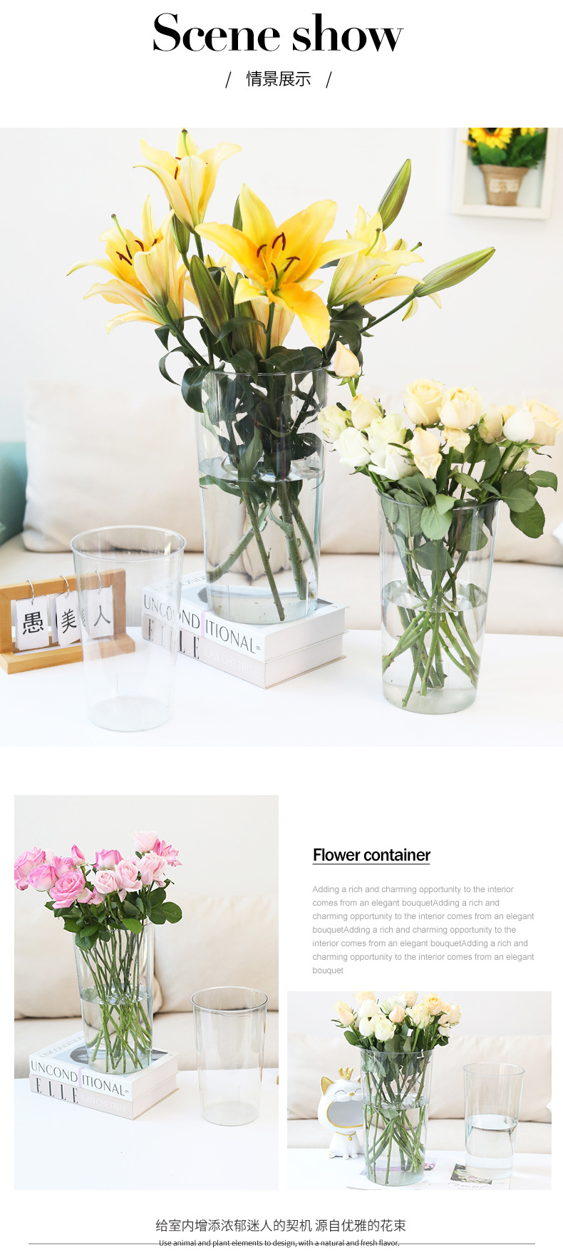 꽃 가게 가정용 꽃 양동이 높은 양동이 거품 꽃 꽃 꽃 배열 큰 꽃병에 대 한 투명 라운드 아크릴 꽃 양동이