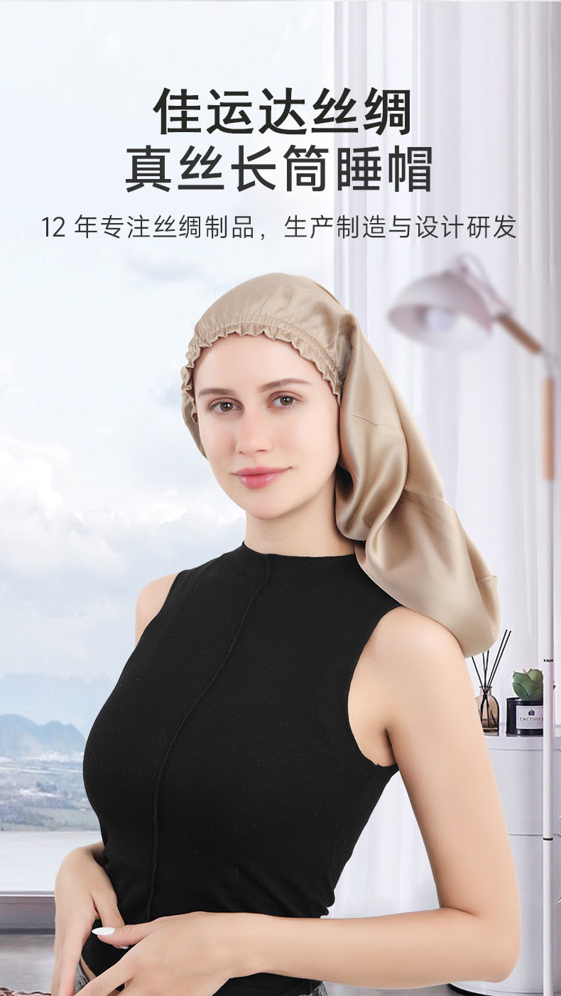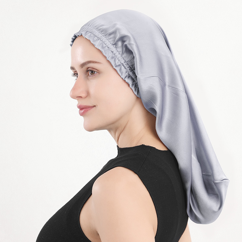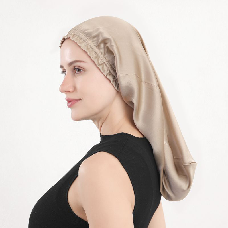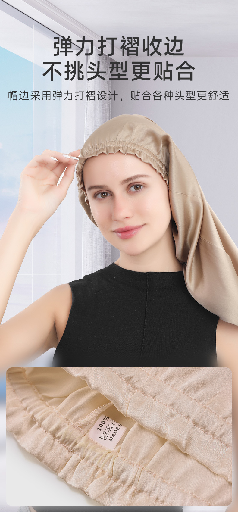 새로운 스타일 실크 Nightcap 뽕나무 실크 긴 머리 모자 귀 가장자리 긴 배럴 모자 여성 홈 헤어 케어 모자 아마존스토어 가기