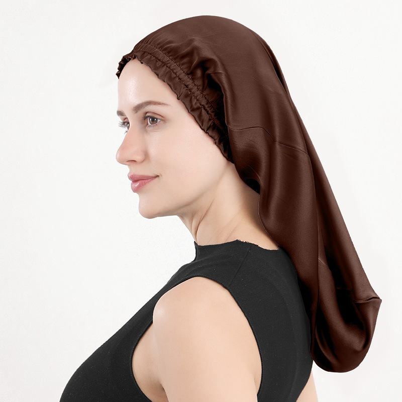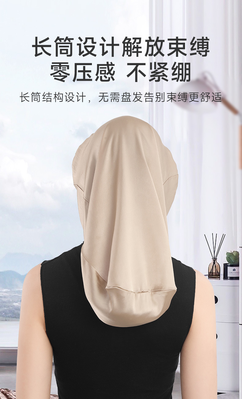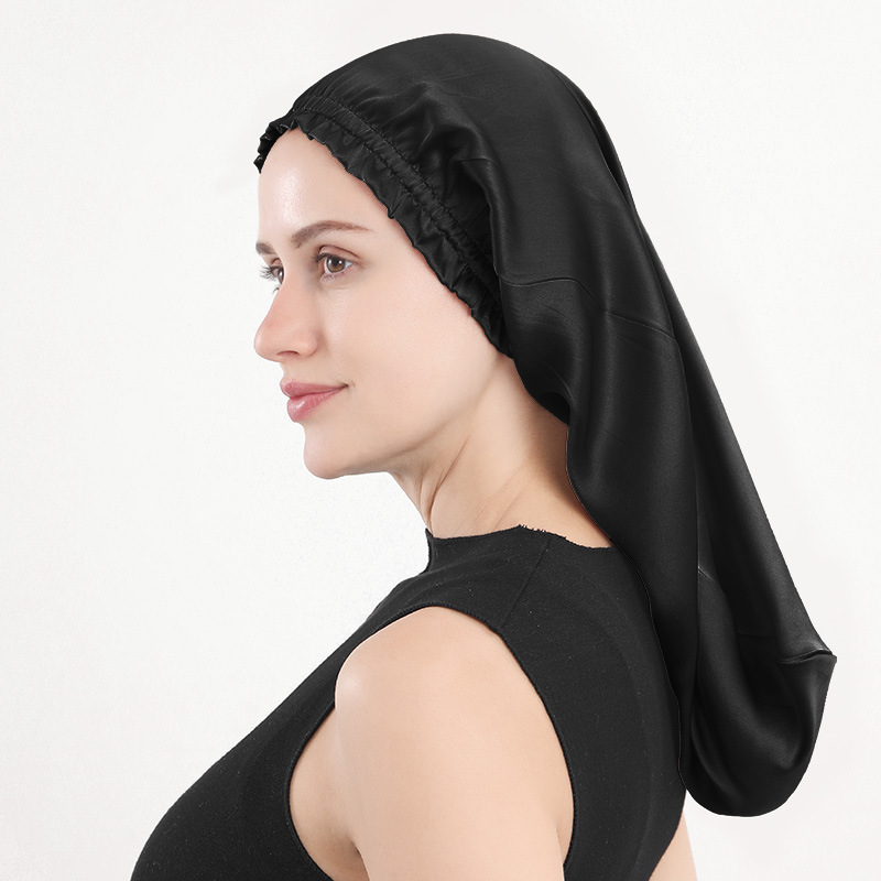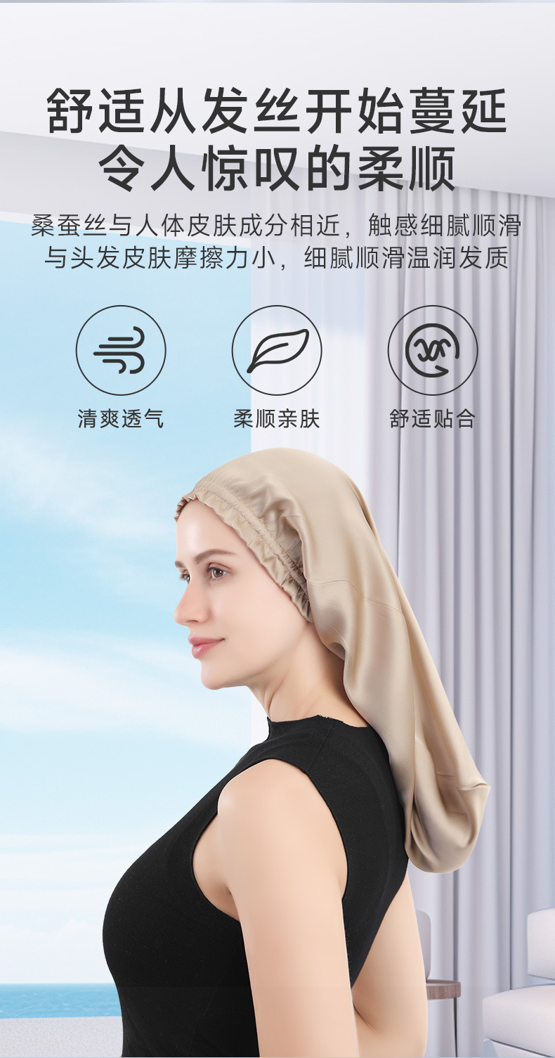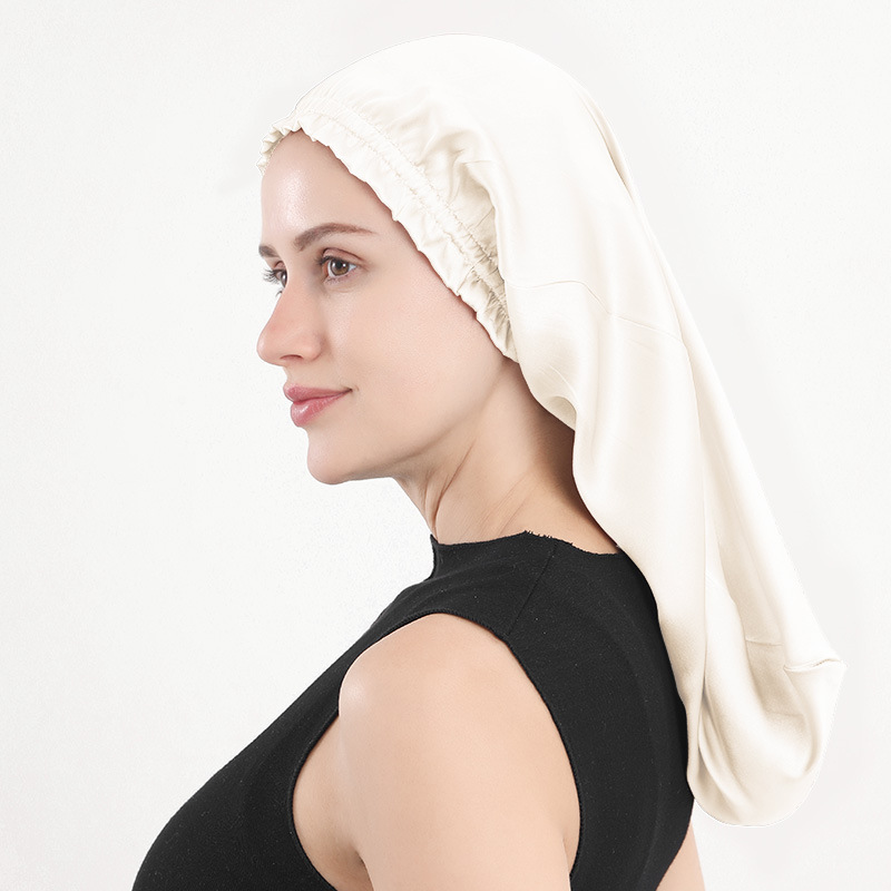 새로운 스타일 실크 Nightcap 뽕나무 실크 긴 머리 모자 귀 가장자리 긴 배럴 모자 여성 홈 헤어 케어 모자 아마존스토어 가기