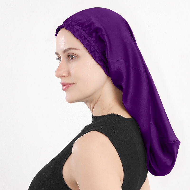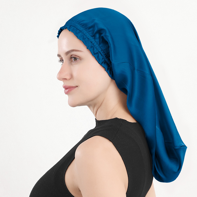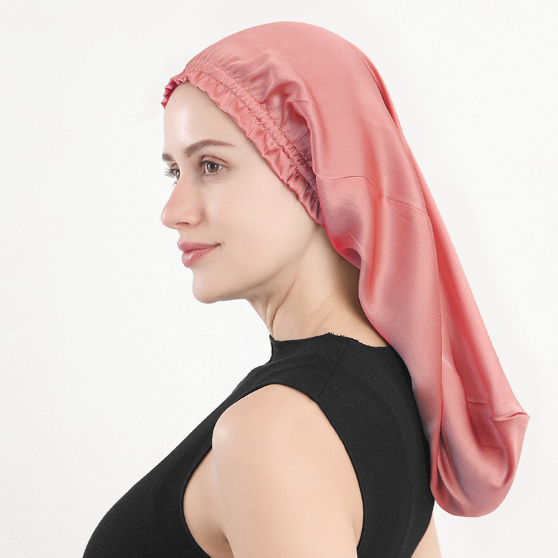 새로운 스타일 실크 Nightcap 뽕나무 실크 긴 머리 모자 귀 가장자리 긴 배럴 모자 여성 홈 헤어 케어 모자 아마존