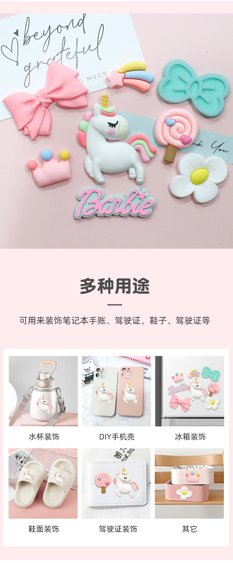 유성 유니콘 조랑말 부드러운 고무 PVC 액세서리 휴대 전화 케이스 DIY 활 머리핀 컵 슬리퍼 패치
