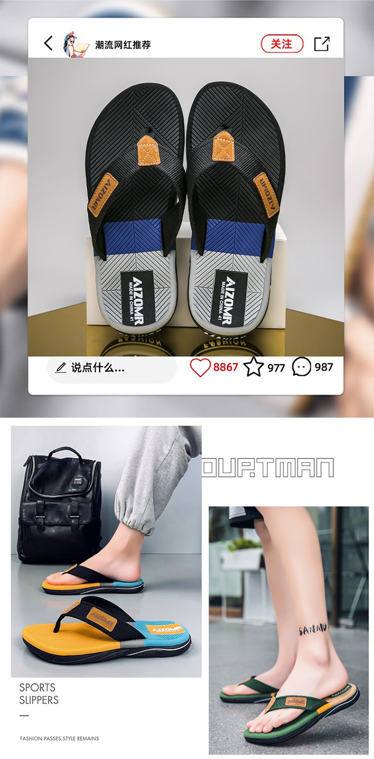 Chuanglong AIZOMR 봄 여름 신작 남성용 아우터 슬리퍼 EVA 고탄성 두꺼운 밑창 냄새 나지 않는 발 고급 슬리퍼스토어 가기