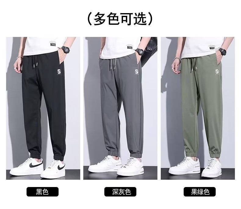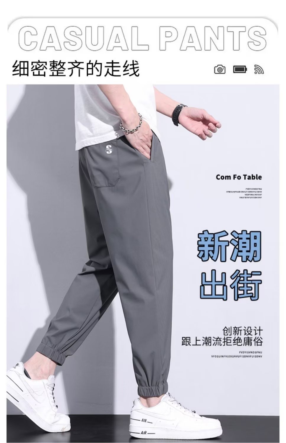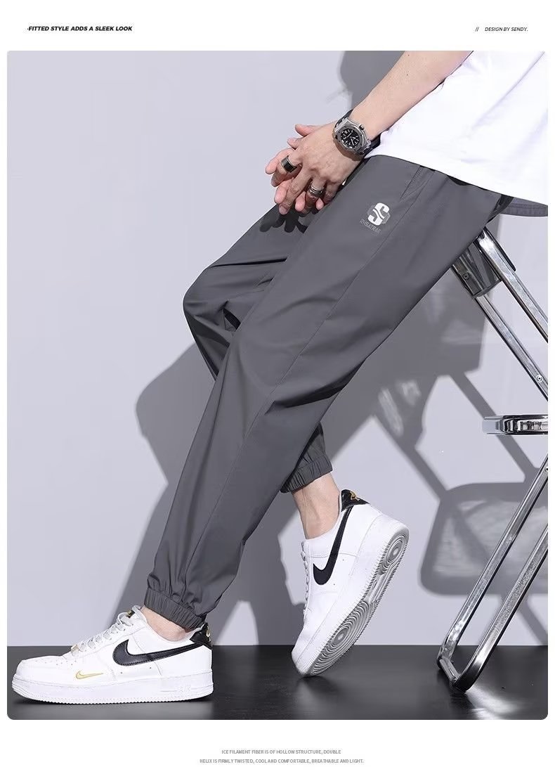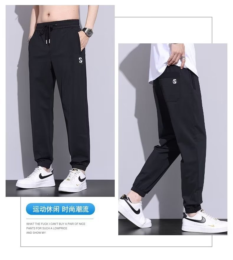 바지 남자의 여름 얇은 얼음 실크 유행 브랜드 유행 느슨한 플러스 사이즈 다리 스포츠 모든 일치 캐주얼 바지스토어 가기