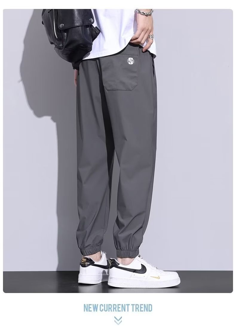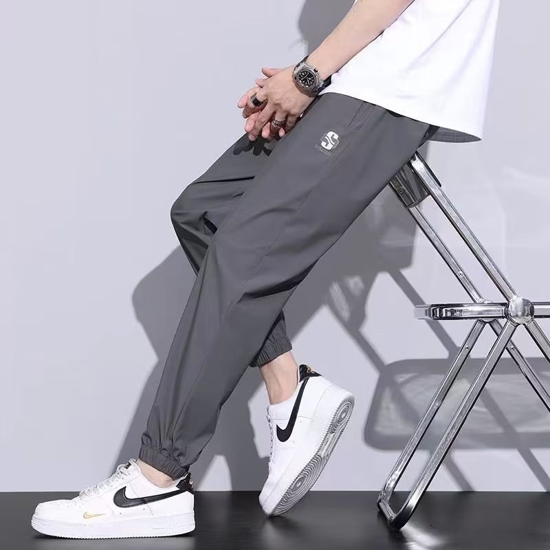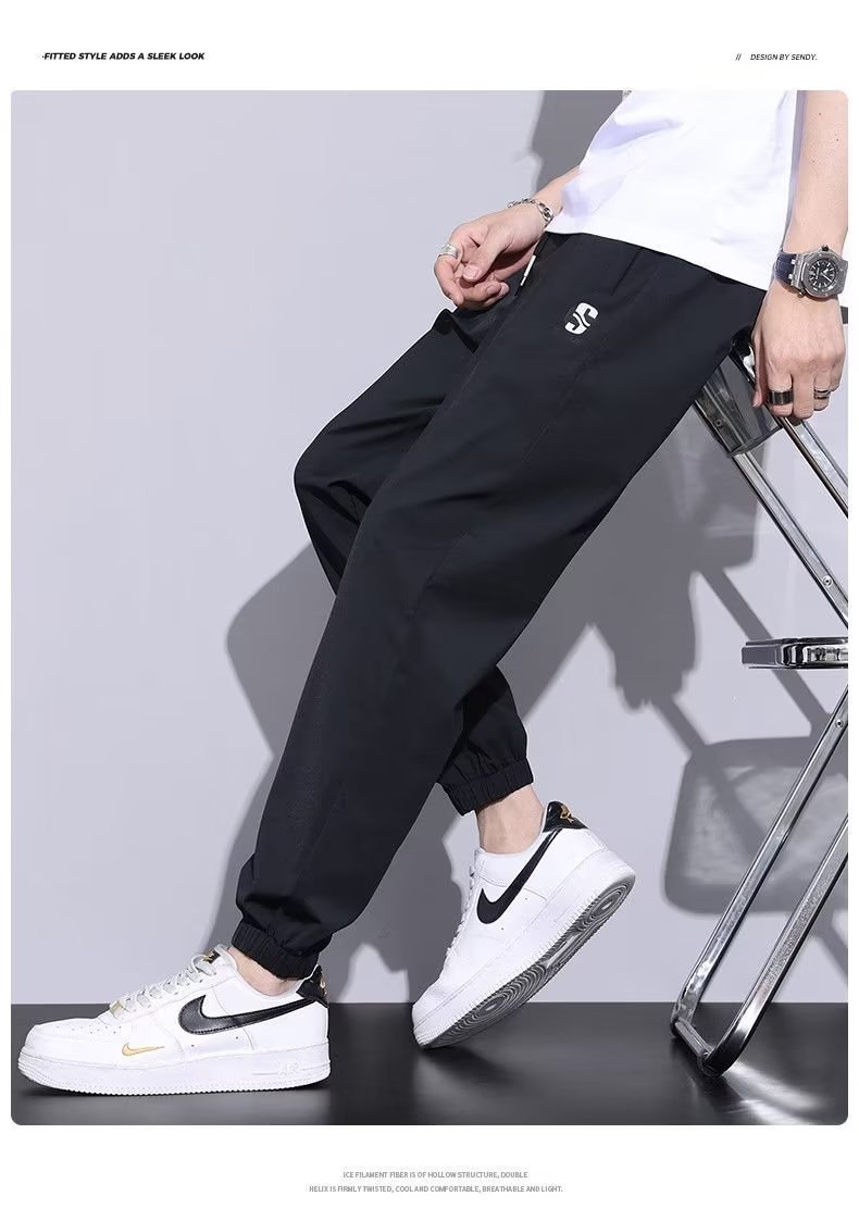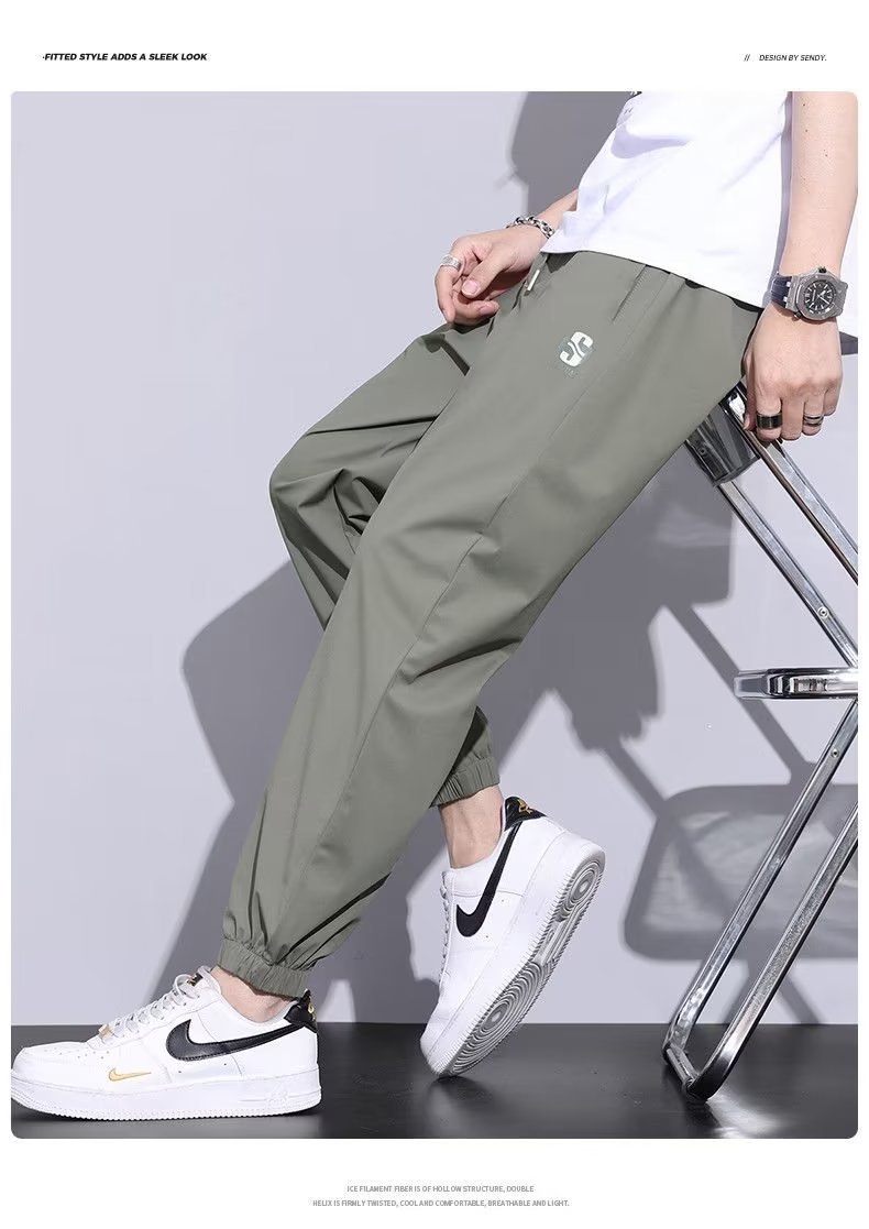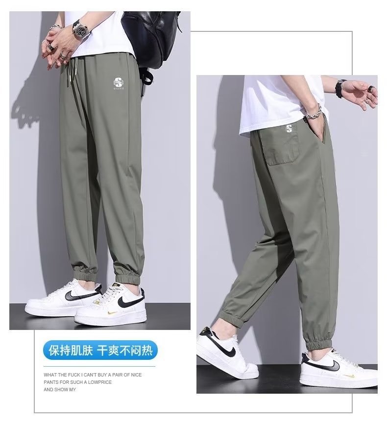 바지 남자의 여름 얇은 얼음 실크 유행 브랜드 유행 느슨한 플러스 사이즈 다리 스포츠 모든 일치 캐주얼 바지스토어 가기