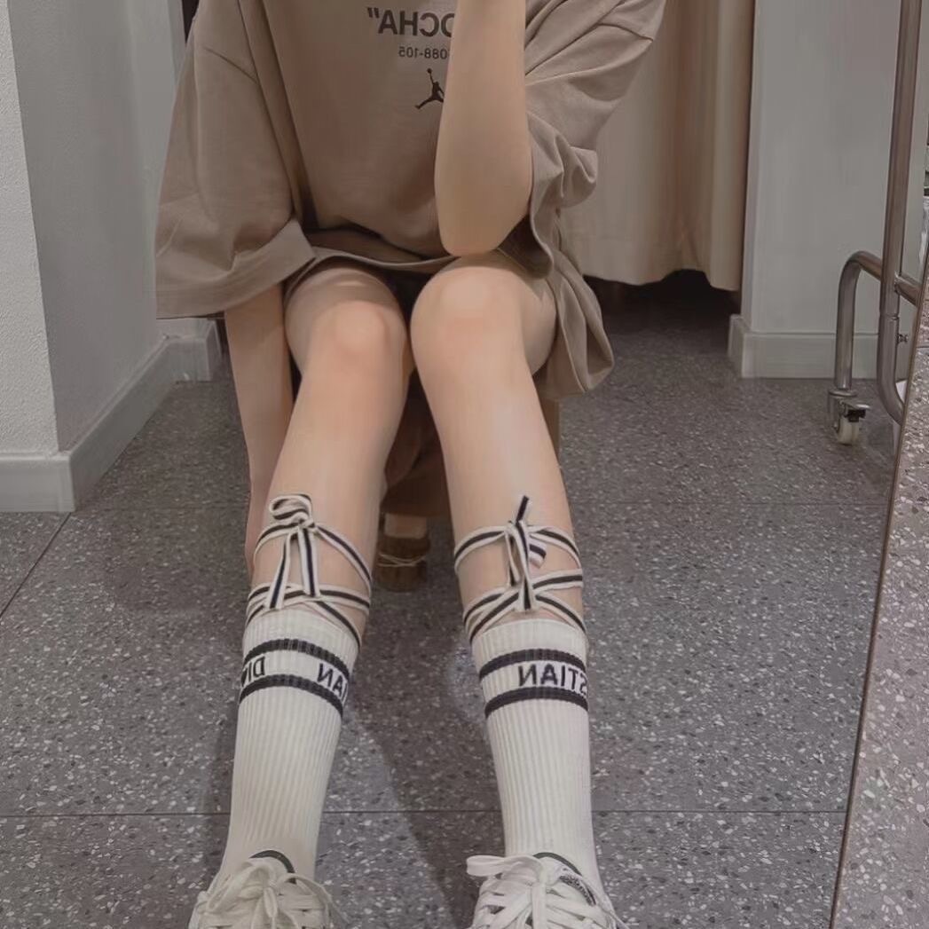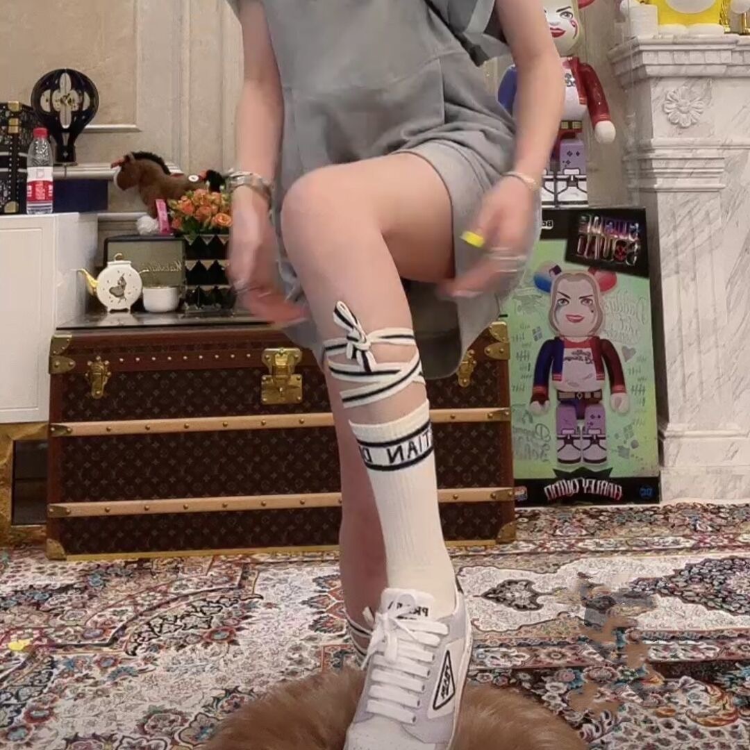 D 홈 유럽 여성 양말 Mrs Chen 그물 빨간 스트랩 양말 편지 양말 여성 패션 송아지 양말 얇은면스토어 가기